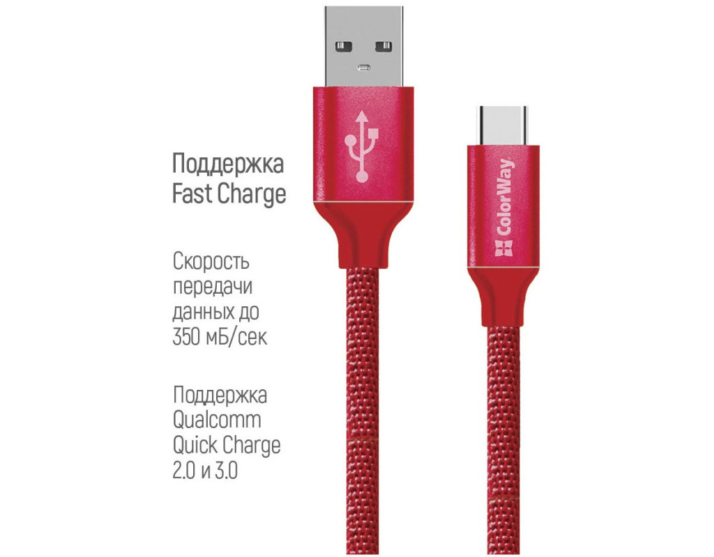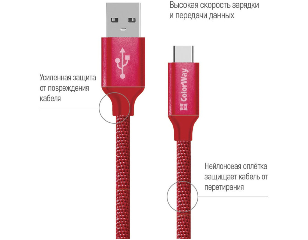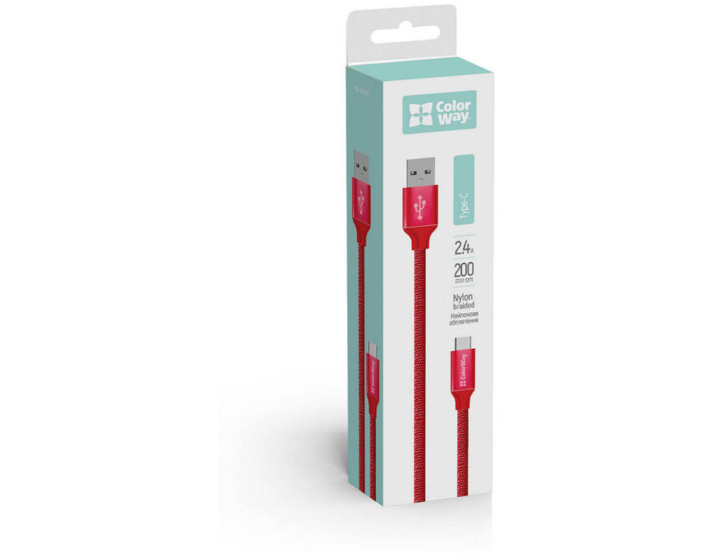 Дата кабель USB 2.0 AM to USB-C 2.0m red ColorWay (CW-CBUC008-RD)