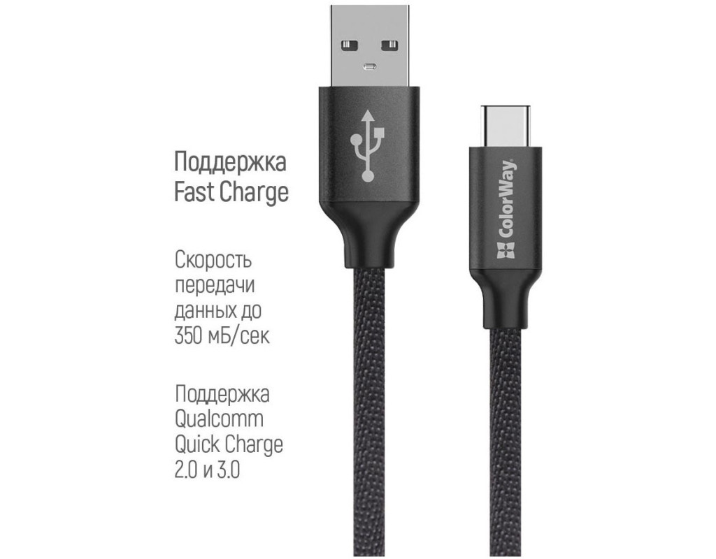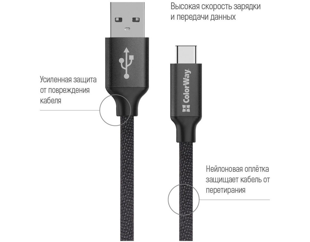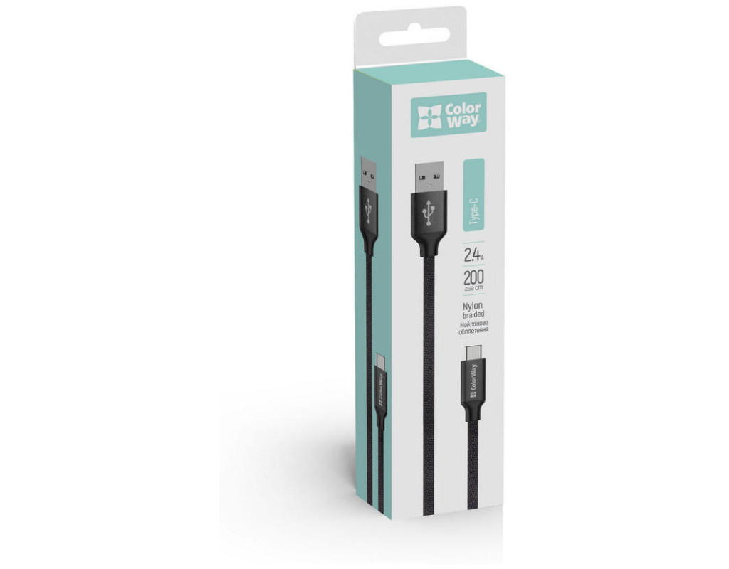 Дата кабель USB 2.0 AM to USB-C 2.0m black ColorWay (CW-CBUC008-BK)