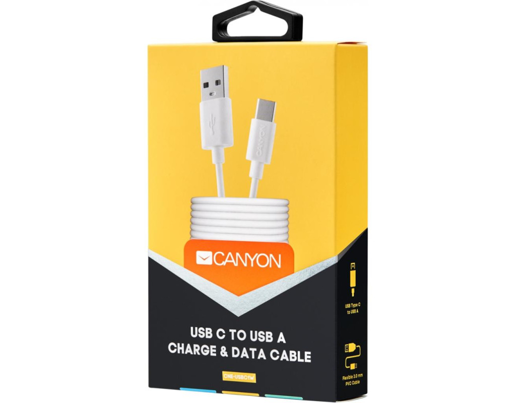 Дата кабель USB 2.0 AM to USB-C 1.0m white Canyon (CNE-USBC1W)