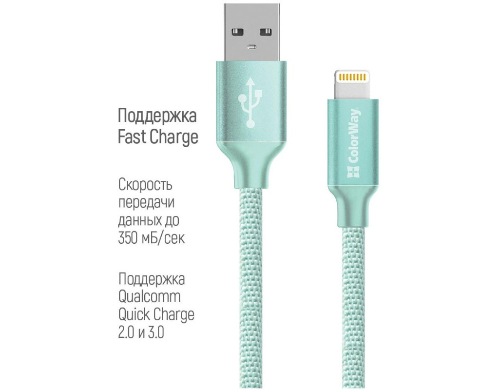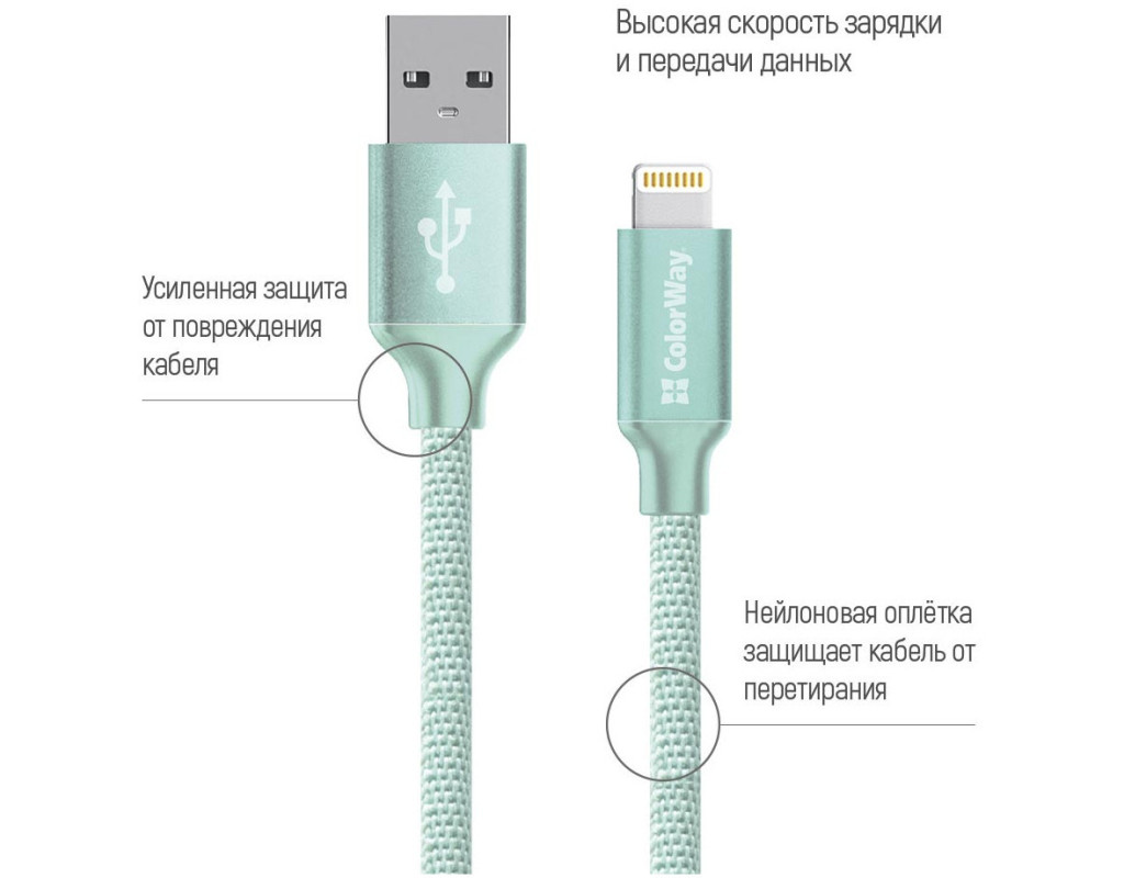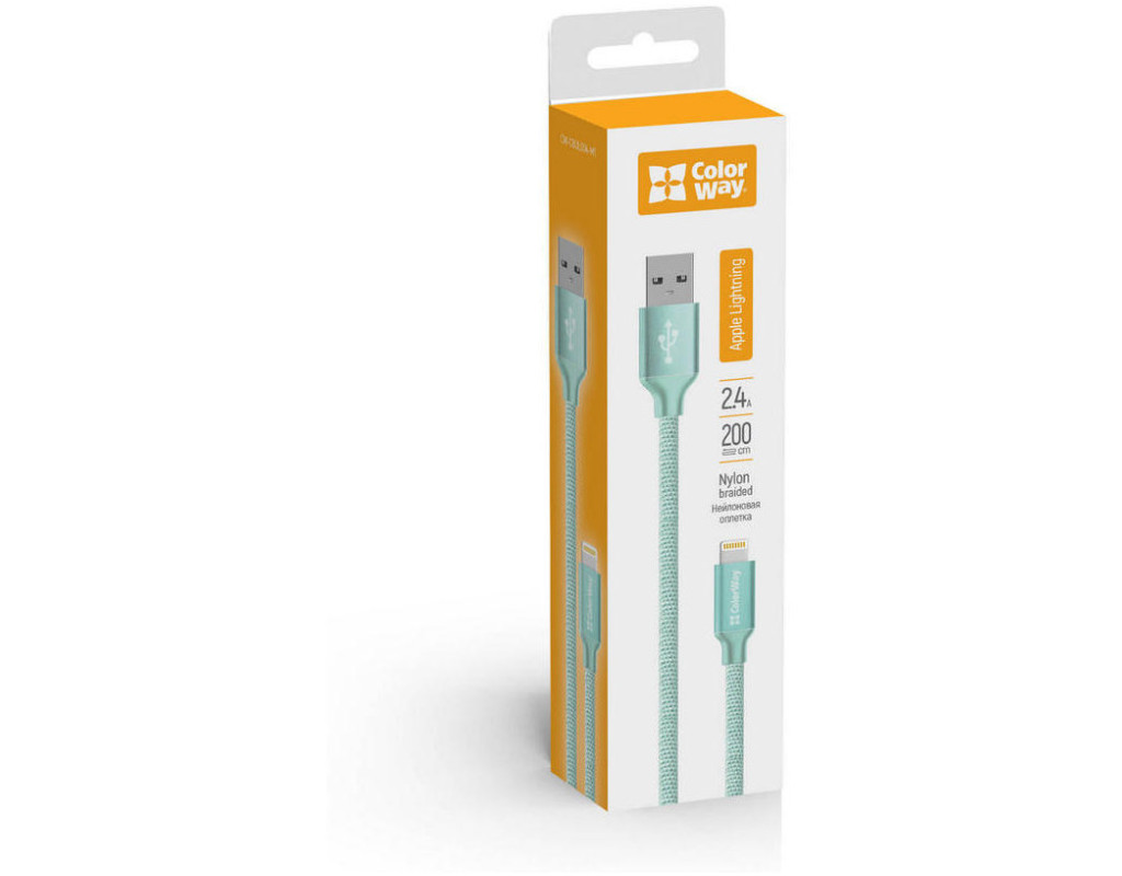 Дата кабель USB 2.0 AM to Lightning 2.0m mint ColorWay (CW-CBUL007-MT)