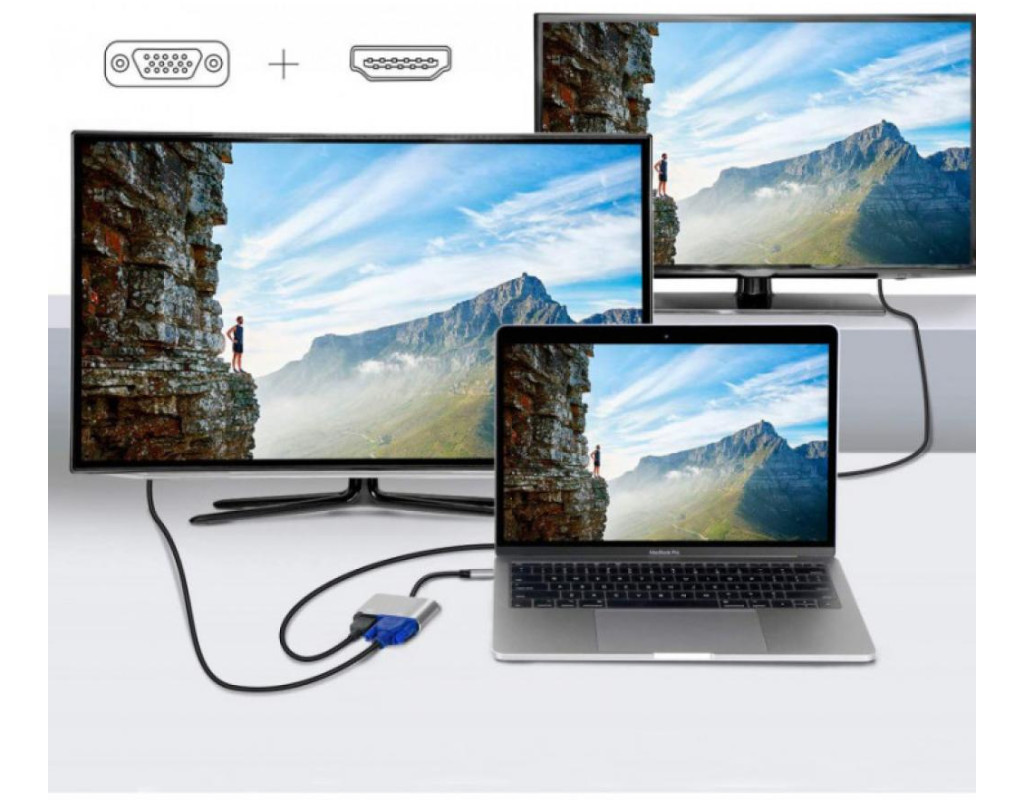 Переходник Type-C to HDMI / VGA Extradigital (KBV1743)