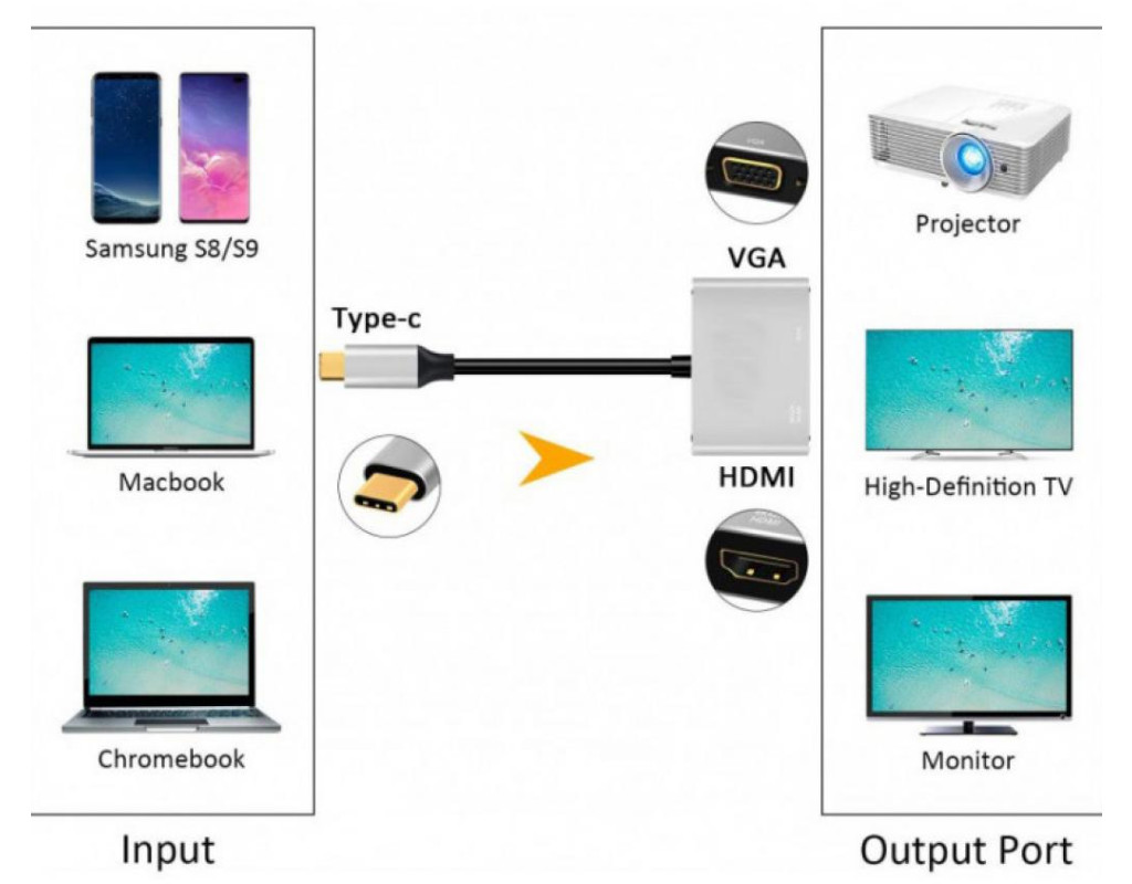 мультимедийный, Разъем 1 - USB Тип C, разъем 2 - HDMI, VGA