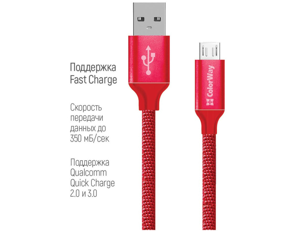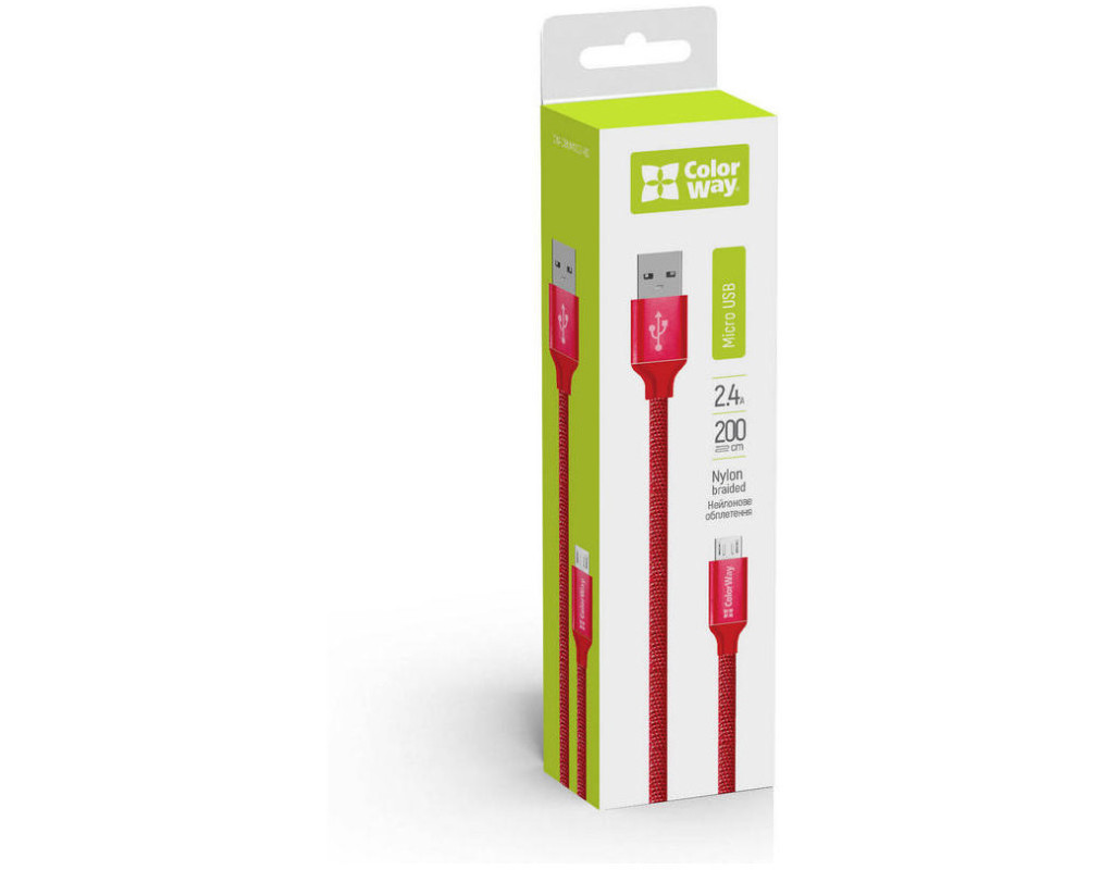 Дата кабель USB 2.0 AM to Micro 5P 2.0m red ColorWay (CW-CBUM009-RD)