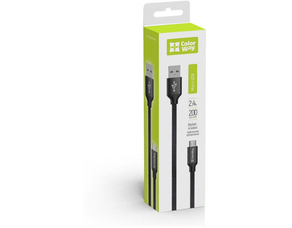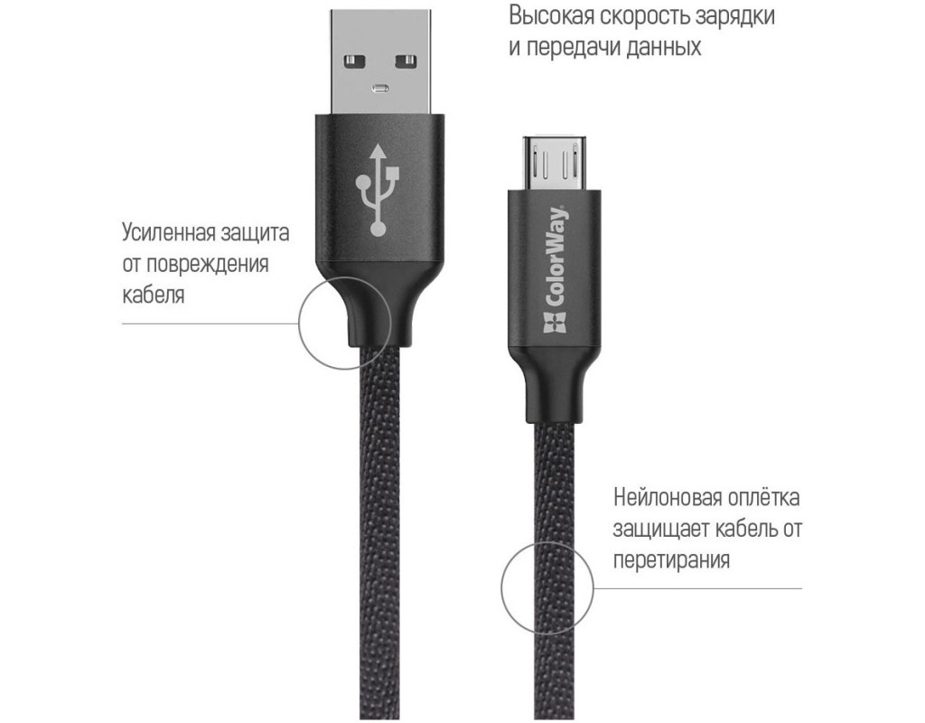 Дата кабель USB 2.0 AM to Micro 5P 2.0m black ColorWay (CW-CBUM009-BK)
