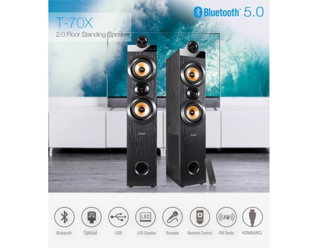 | Акустическая система F&D T-70X Black - это элегантный и функциональный выбор для тех, кто ценит высококачественное звучание в современном дизайне. Эта напольная система с мощностью в 160 Вт создает сильный и насыщенный звук, способный удовлетворить даже самого требовательного слушателя. F&D T-70X Black предлагает универсальность подключения благодаря своим многочисленным возможностям: вы можете выбирать между проводным и беспроводным подключением. Наличие Bluetooth обеспечивает быстрое и удобное соединение с вашими устройствами без лишних проводов. Также доступны интерфейсы USB и разъем AUX, обеспечивая универсальность подключения множества устройств. Одной из ключевых особенностей этой системы является её функция караоке, созданная для завершения любой вечеринки. В комплекте вы найдете микрофон, который позволит вам наслаждаться пением на полную. Встроенный FM-приемник позволяет слушать любимые радиостанции без дополнительных устройств. Кроме того, наличие оптического входа позволяет подключить систему к современной аудио- и видеоаппаратуре. Экран LCD и регулировка громкости обеспечивают легкость в управлении, позволяя вам без усилий настраивать звук по собственным предпочтениям. А удобный беспроводной пульт дистанционного управления делает управление системой еще более комфортным. F&D T-70X Black изготовлен из высококачественной древесины (MDF), что не только подчеркивает её эстетичный вид, но и способствует улучшению акустических свойств, обеспечивая чистоту и глубину звучания. Эта акустическая система поддерживает 2.0 канальную систему с двухполосными колонками, что гарантирует детальное воспроизведение различных частотных диапазонов. Мощность каждой колонки позволяет создавать качественное аудио-сопровождение для любой ситуации, будь то кинопоказ или музыкальный концерт в домашних условиях. Независимо от того, организуете ли вы вечеринку или просто хотите насладиться любимой музыкой дома, F&D T-70X Black станет безупречным выбором, сочетая в себе стиль, функциональность и высокое качество звука. Владельцы этой системы непременно оценят её крутой и мощный подход к музыкальному оформлению пространства. Благодаря питанию от сети, вы можете рассчитывать на стабильную работу и долговечность этого продукта, делая его идеальным решением для вашего дома или офиса. |