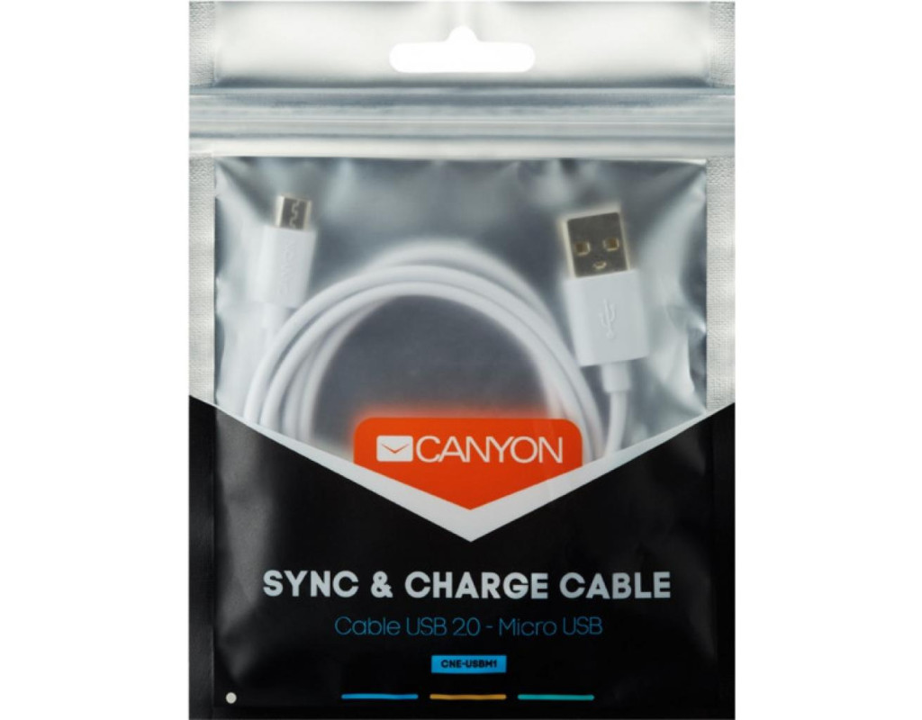 Дата кабель USB 2.0 AM to Micro 5P 1.0m White Canyon (CNE-USBM1W)