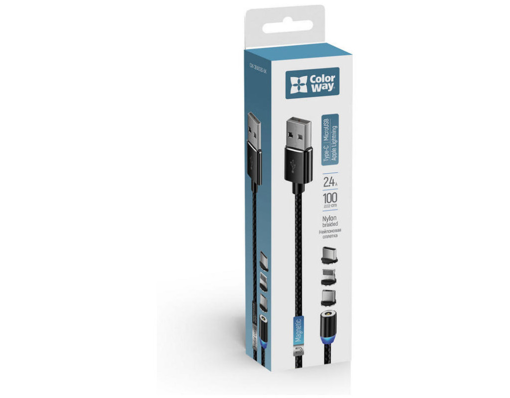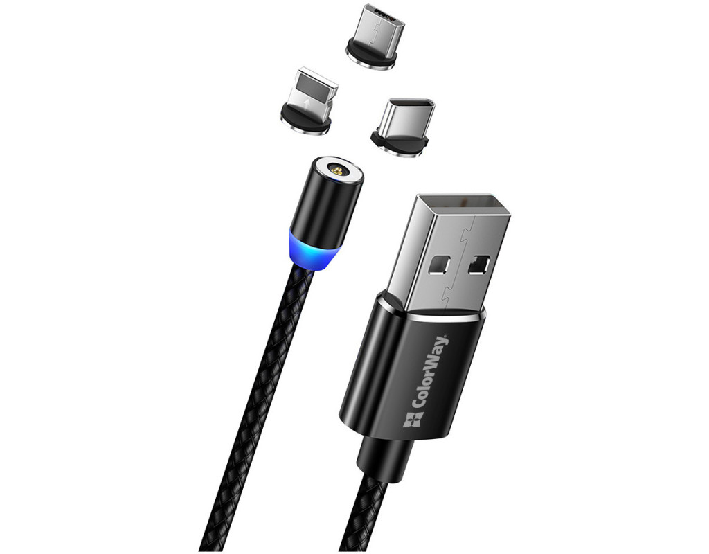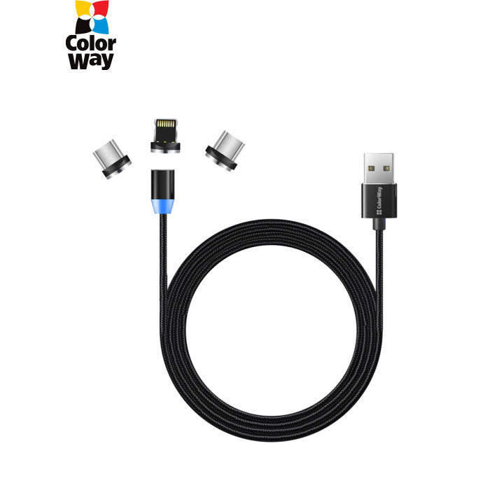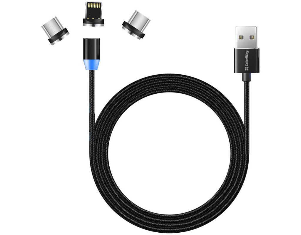 Дата кабель USB 2.0 AM to Lightning + Micro 5P + USB-C 1.0m Magnet only charge ColorWay (CW-CBUU020-BK)