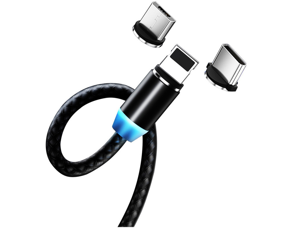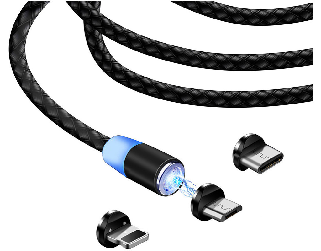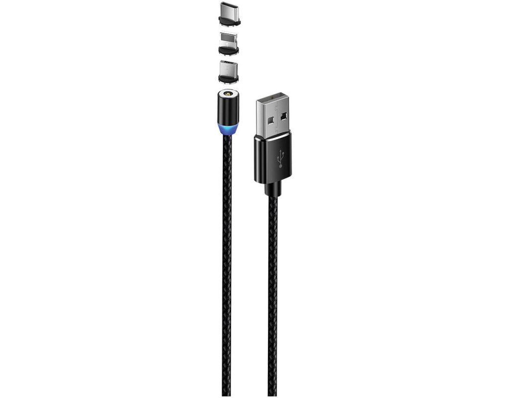 Тип - кабель, Тип коннектора 1 - USB 2.0, Тип коннектора 2 - micro USB, Lightning, USB Type-C, длина - 1 м, магнитные коннекторы, Цвет - черный