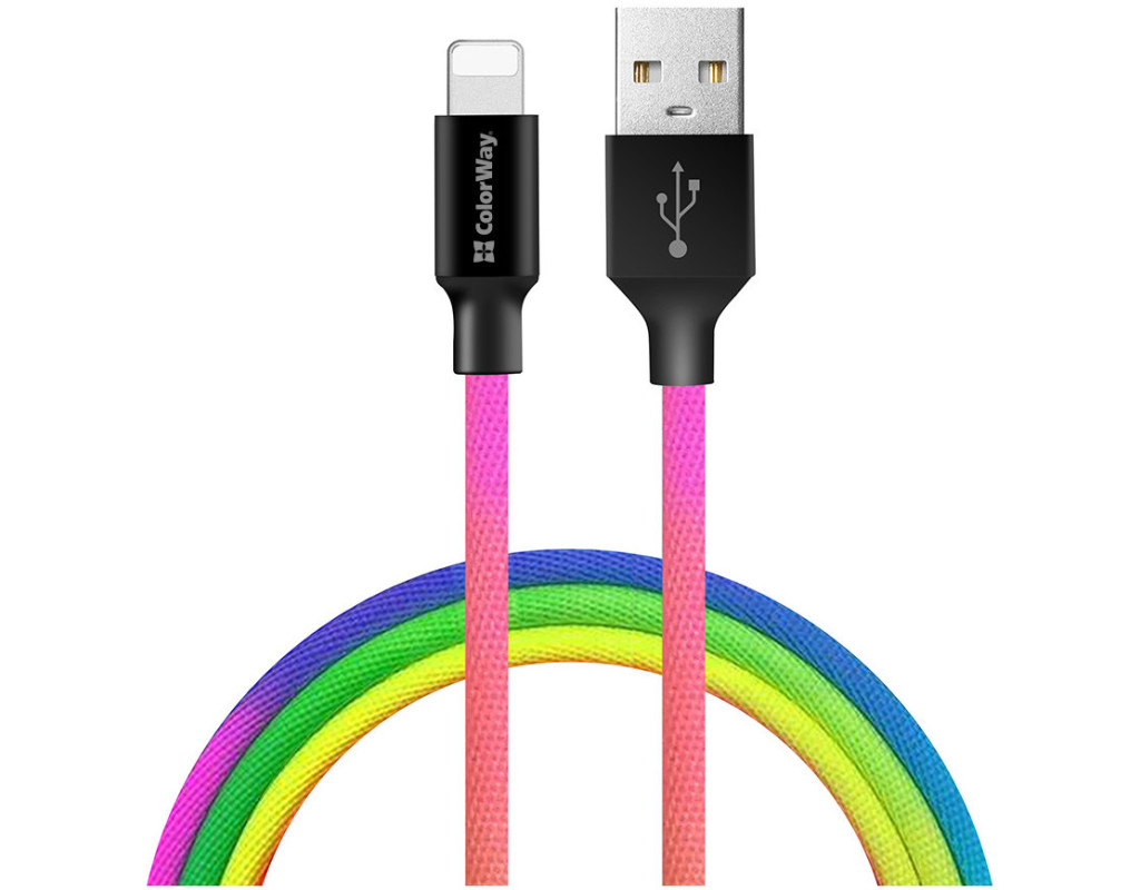 Дата кабель USB 2.0 AM to Lightning 1.0m multicolor ColorWay (CW-CBUL016-MC)