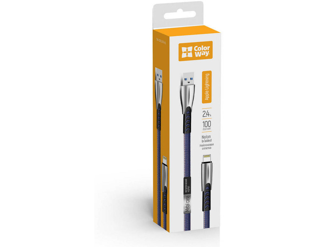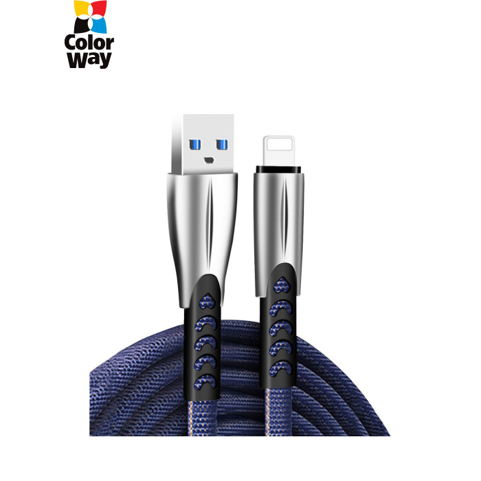 Дата кабель USB 2.0 AM to Lightning 1.0m zinc alloy blue ColorWay (CW-CBUL010-BL)