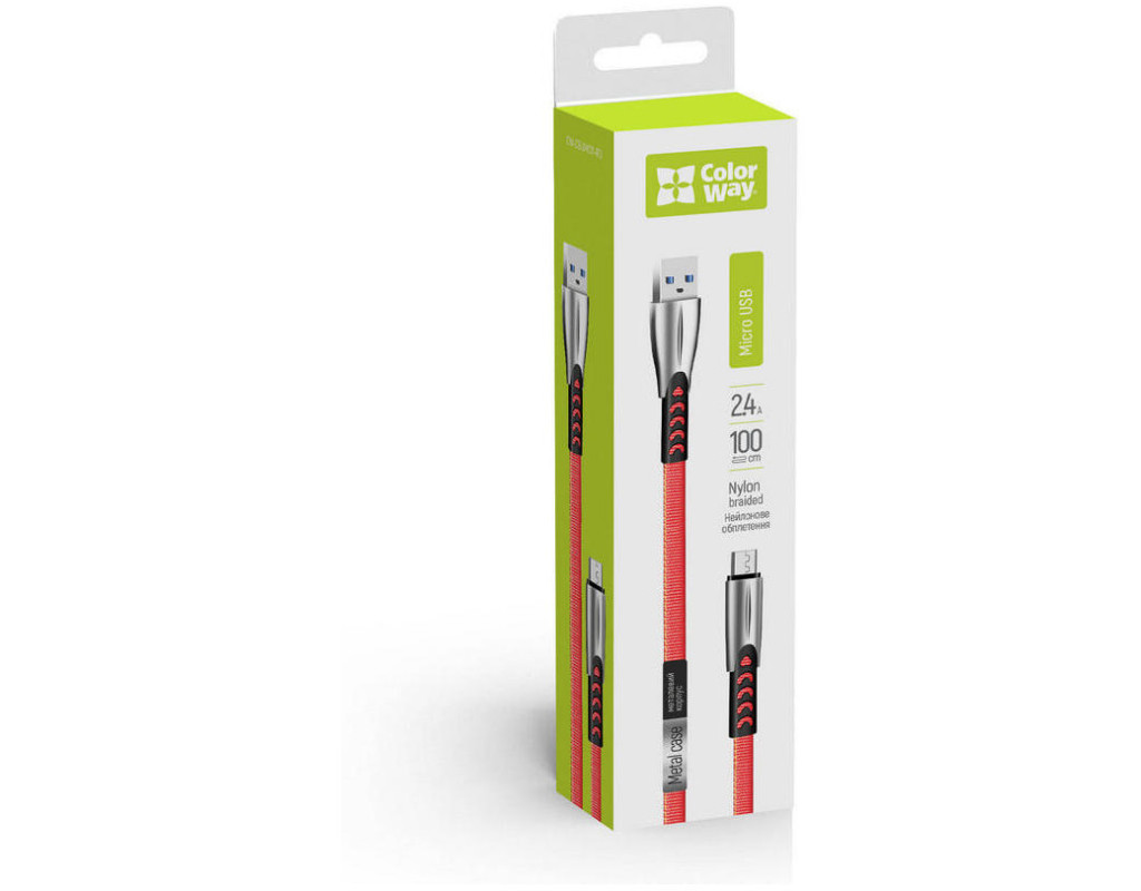 Дата кабель USB 2.0 AM to Micro 5P 1.0m zinc alloy red ColorWay (CW-CBUM011-RD)