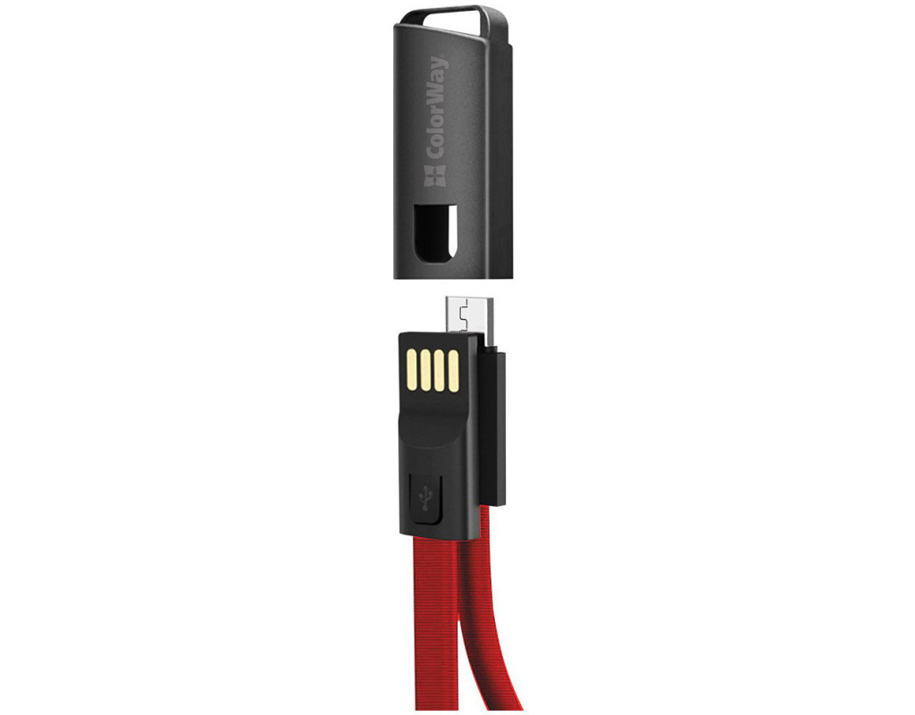 Тип - кабель, Тип коннектора 1 - USB 2.0, Тип коннектора 2 - micro USB, длина - 0.2 м, Номинальный ток - 2.4 А, плоский кабель, брелок, Цвет - красный