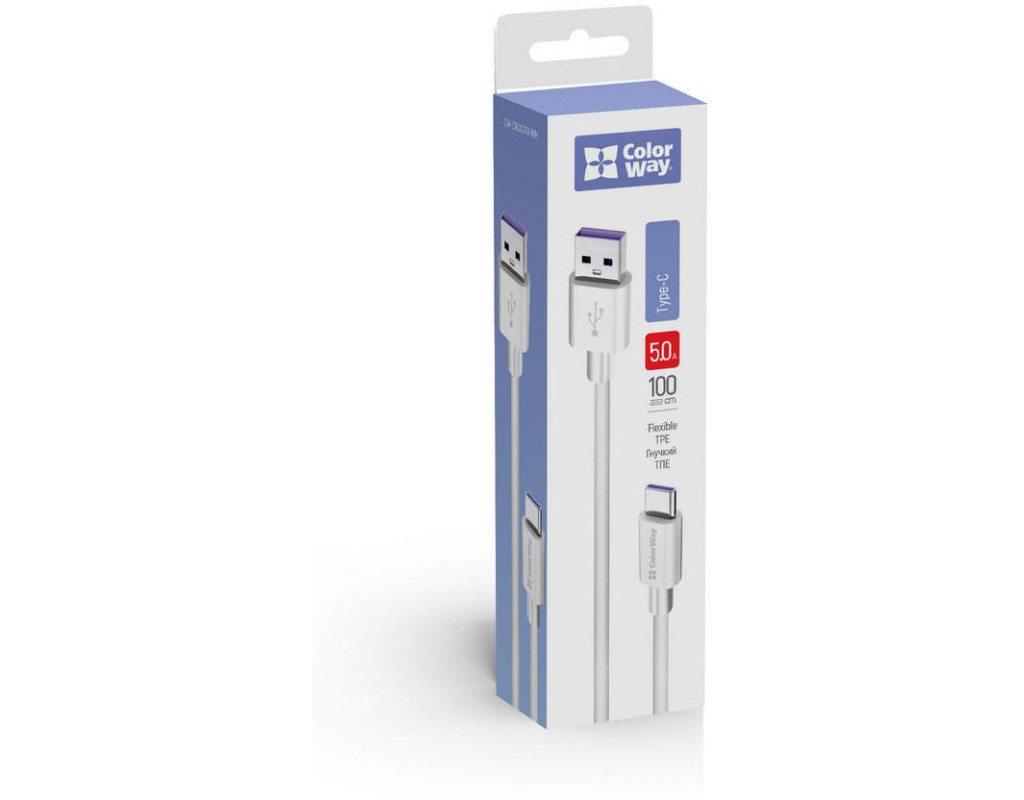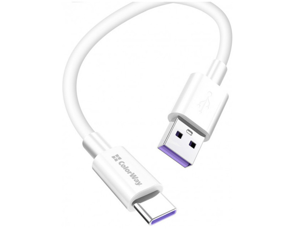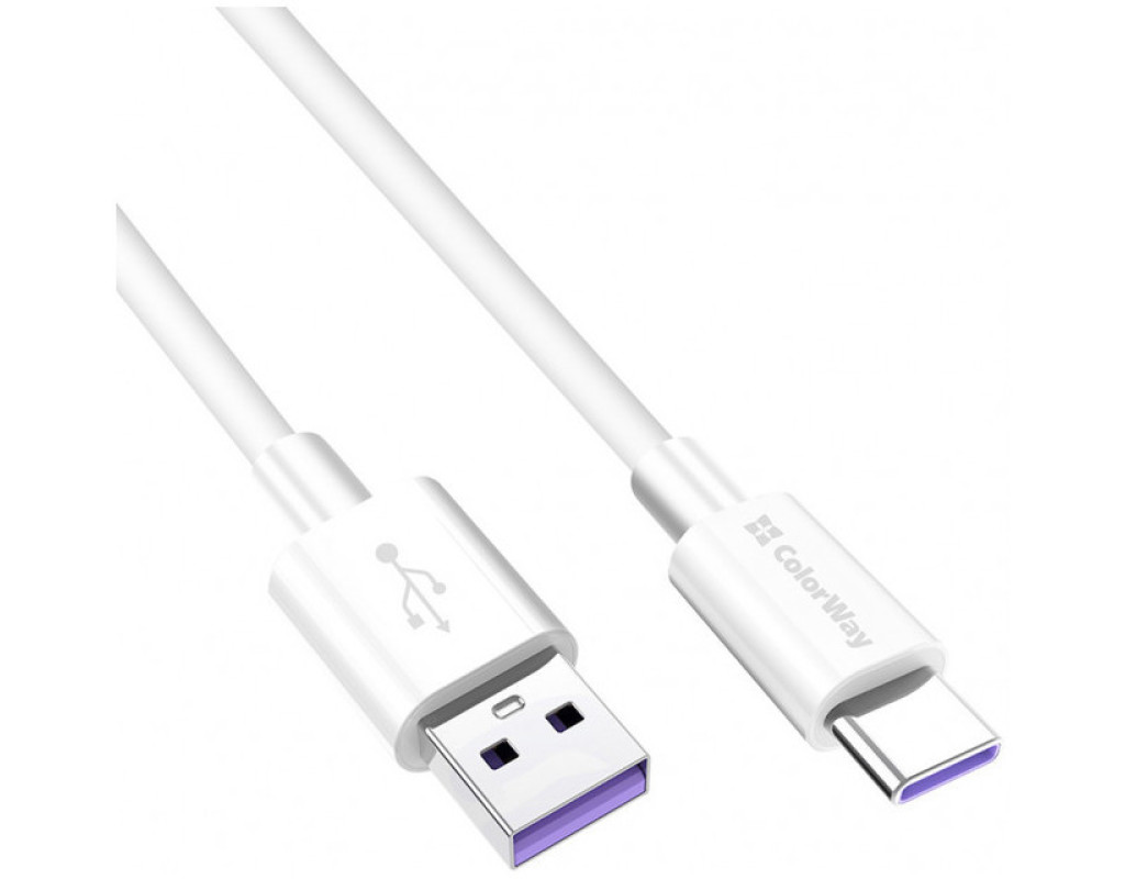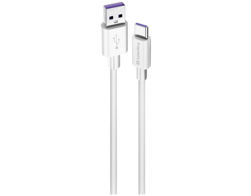 Дата кабель USB 2.0 AM to USB-C 1.0m 5A white ColorWay (CW-CBUC019-WH)