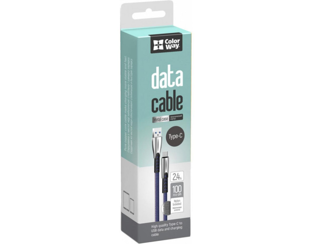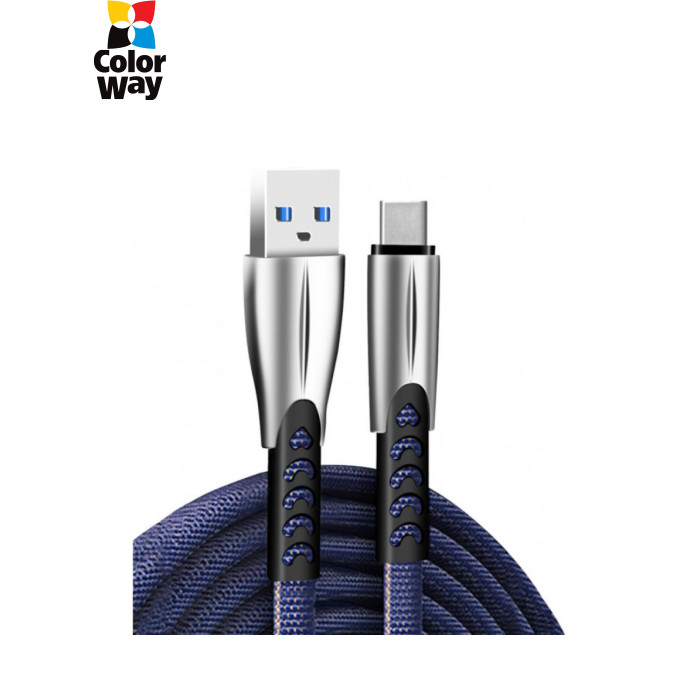 Дата кабель USB 2.0 AM to USB-C 1.0m zinc alloy blue ColorWay (CW-CBUC012-BL)