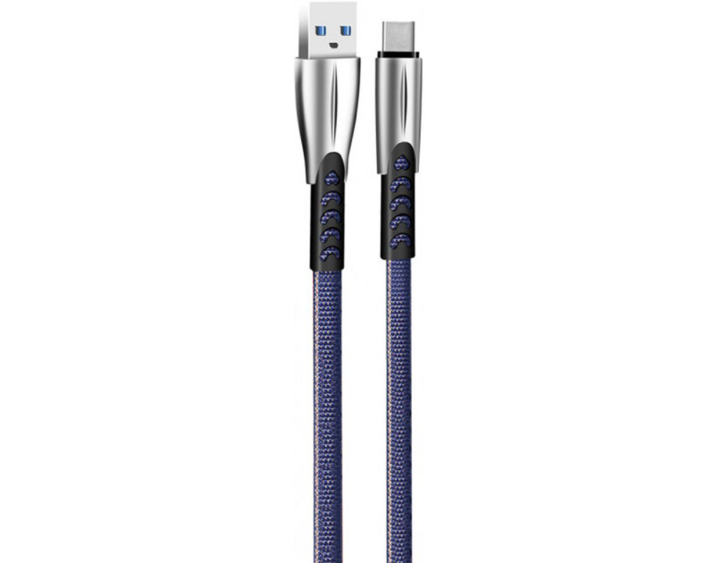 Тип - кабель, Тип коннектора 1 - USB 2.0, Тип коннектора 2 - USB Type-C, длина - 1 м, Номинальный ток - 2.4 А, тканевая оплетка, Цвет - синий