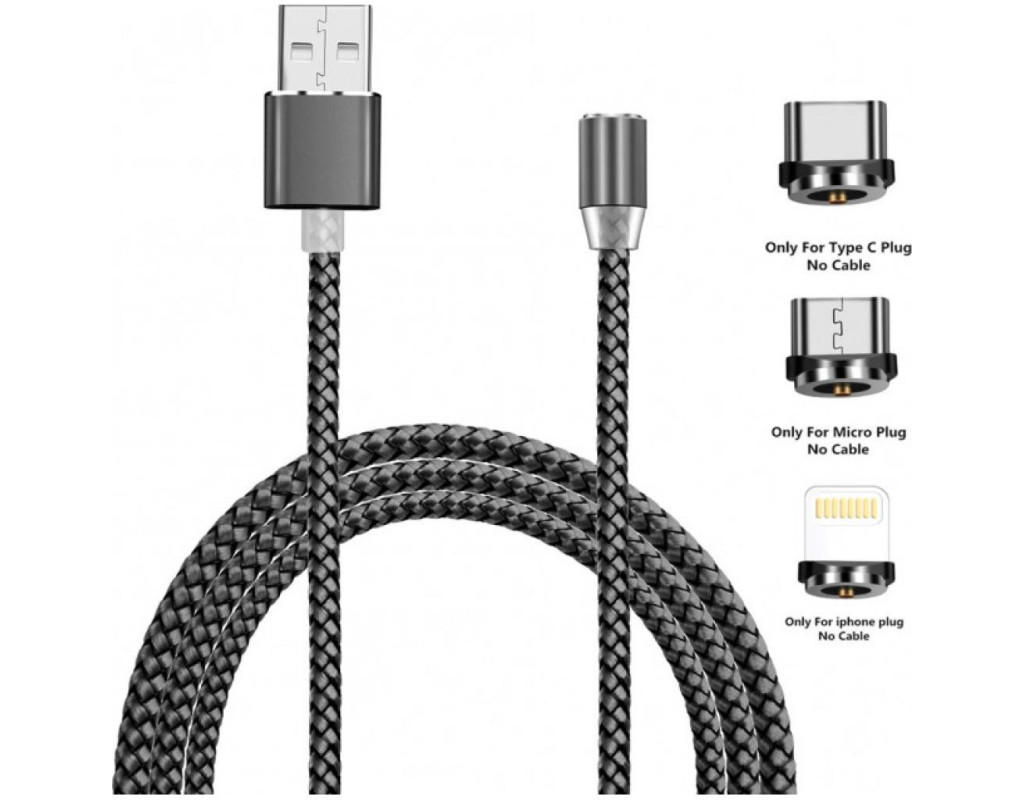 Дата кабель USB 2.0 AM to Lightning + Micro 5P + USB-C 1.2m Magneto gre XoKo (SC-350MGNT-GR)