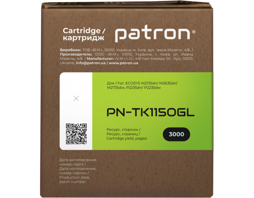 Тонер-картридж Patron KYOCERA TK-1150 GREEN Label (PN-TK1150GL)