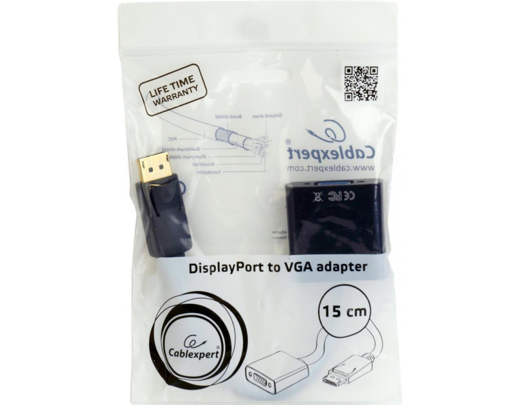 Переходник DisplayPort to VGA Cablexpert (A-DPM-VGAF-02-W)