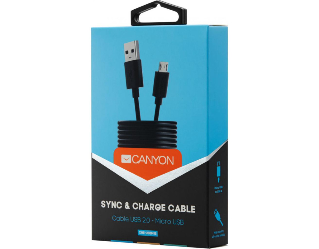 Дата кабель USB 2.0 AM to Micro 5P 1.0m Canyon (CNE-USBM1B)