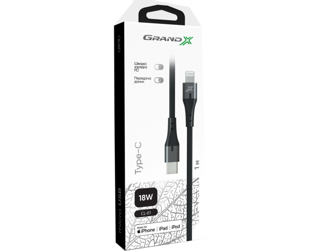 Дата кабель USB-C to Lightning 1.0m PD MFI Grand-X (CL-01)