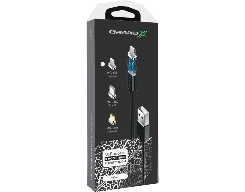 Дата кабель USB 2.0 AM to Lightning 1.0m Magnet Grand-X (MG-01L)
