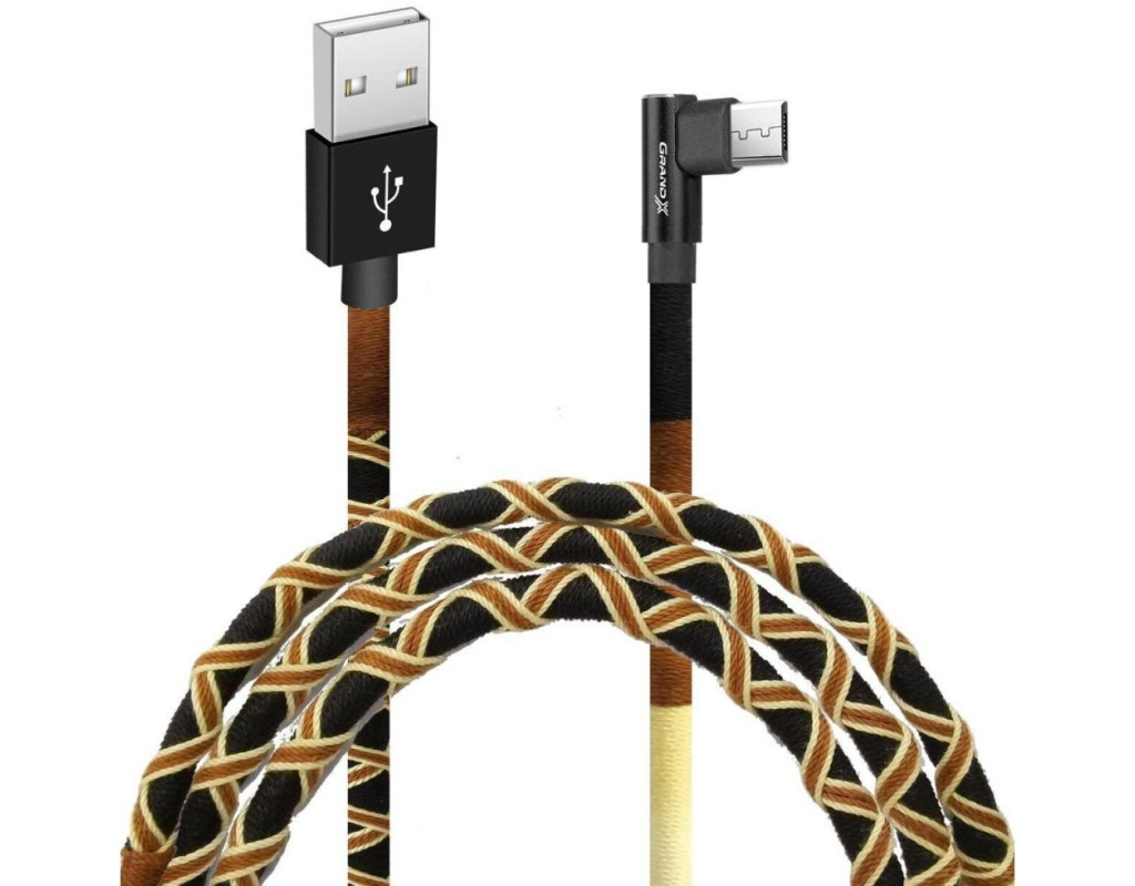 Дата кабель USB 2.0 AM to Micro 5P 1.0m Brown/Yellow Grand-X (FM-08BY)