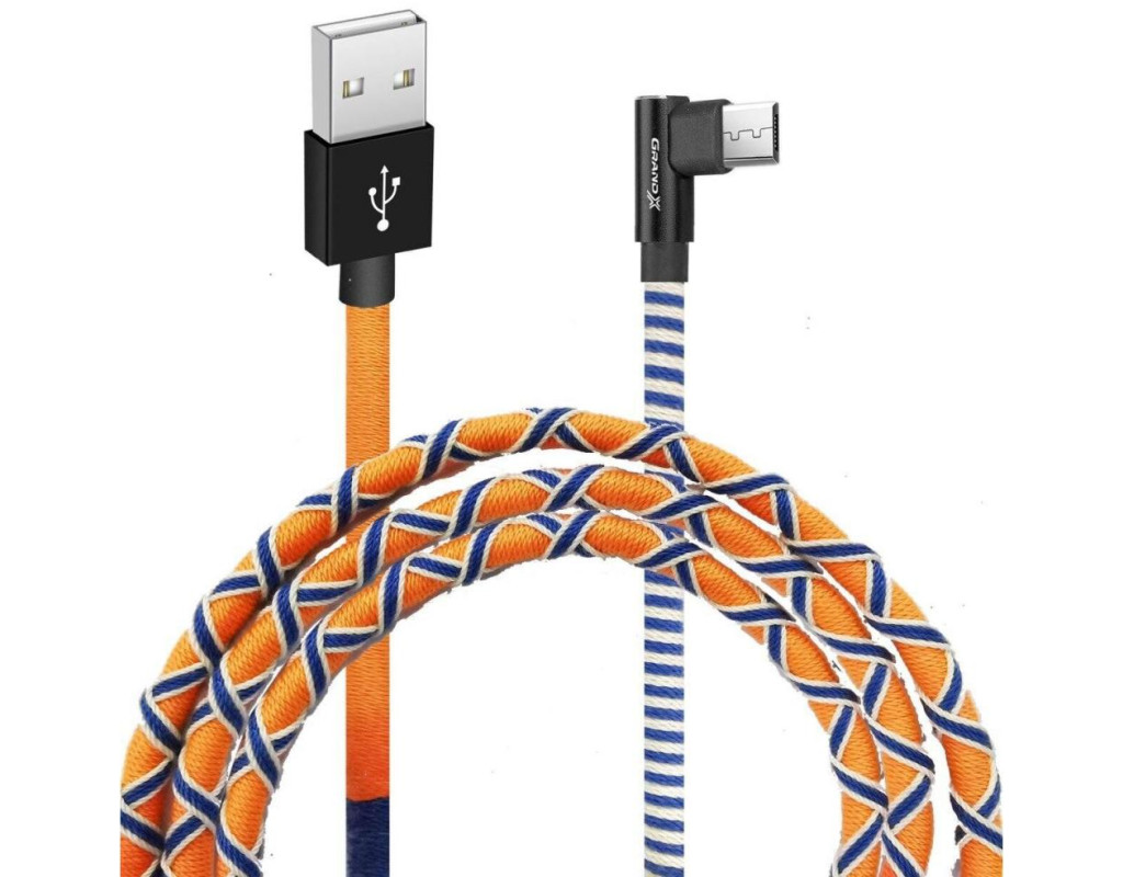 Дата кабель USB 2.0 AM to Micro 5P 1.0m Orange/Blue Grand-X (FM-08OB)