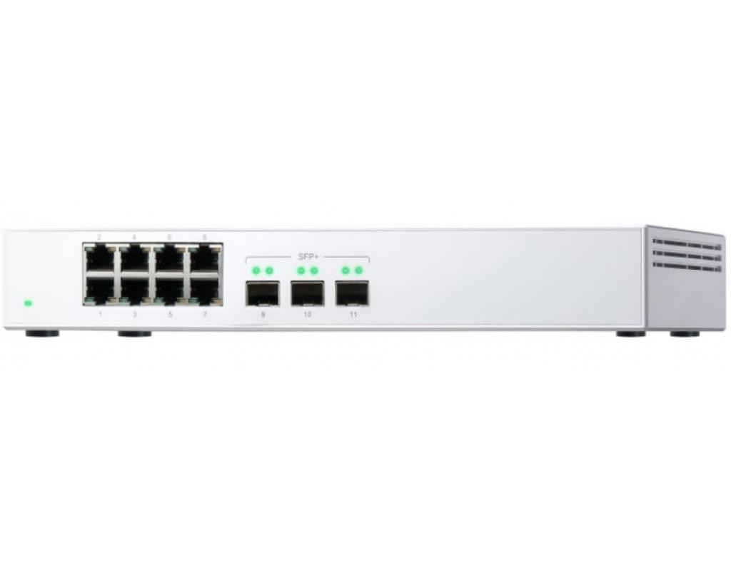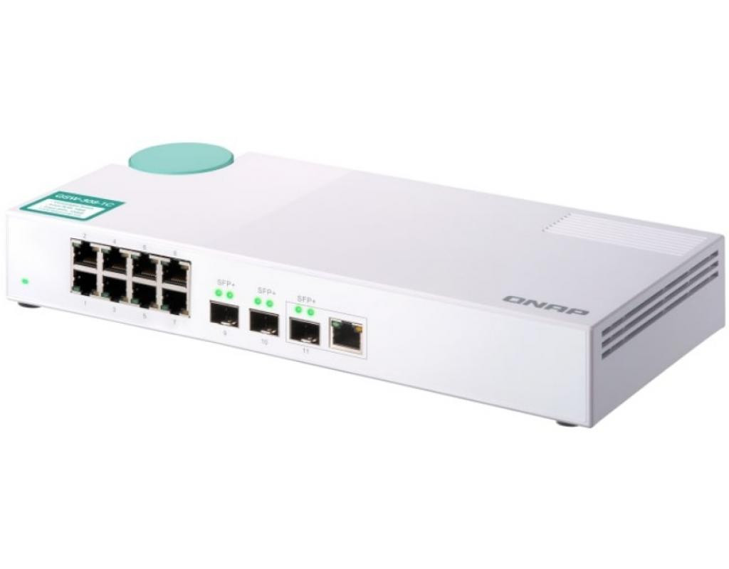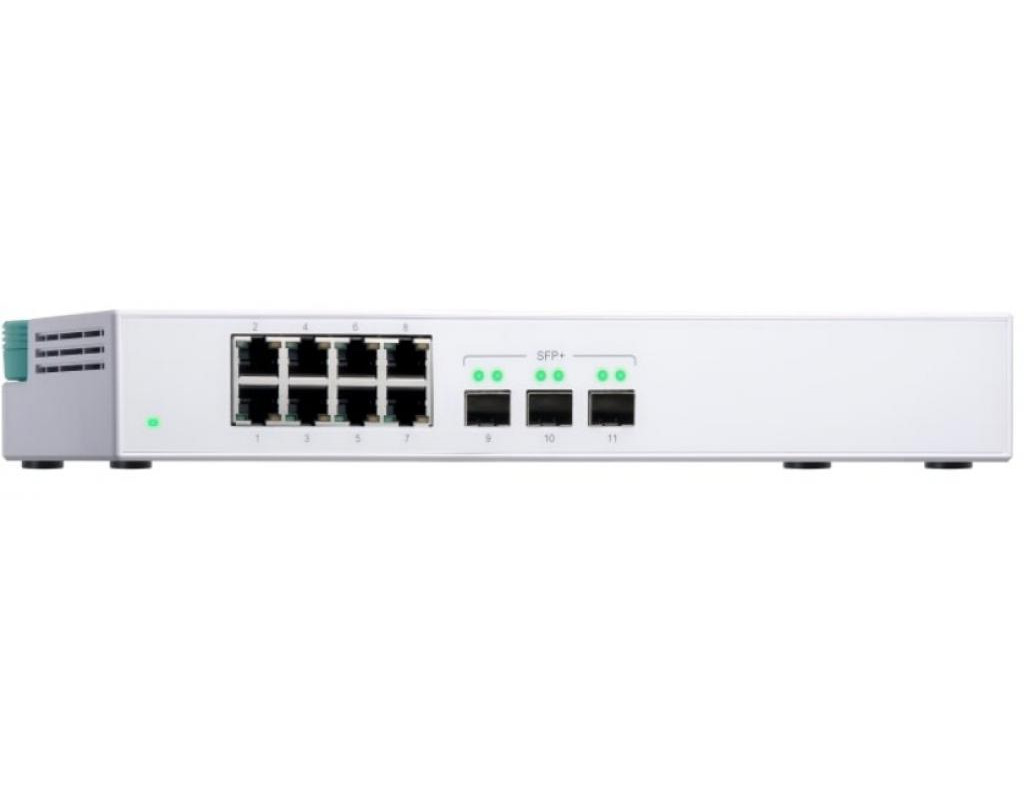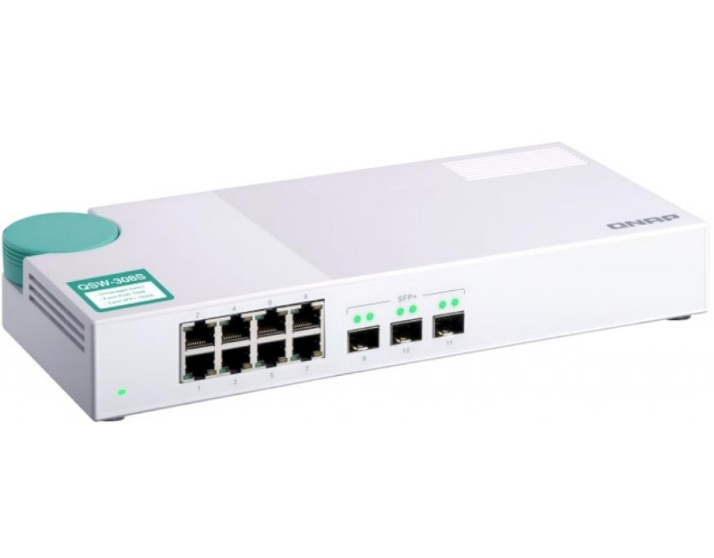 | QSW-308S — неуправляемый коммутатор с тремя 10-гигабитными разъемами SFP+ и восемью гигабитными портами, на базе которого можно быстро организовать гибридную высокоскоростную сетевую инфраструктуру. Благодаря небольшим габаритам и бесшумной работе QSW-308S идеально подходит для дома и офиса, при этом обеспечивает высокую производительность, низкую задержку и превосходную функциональность. |
