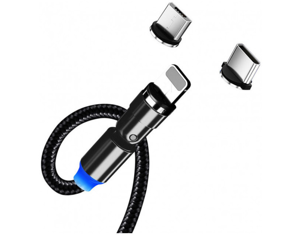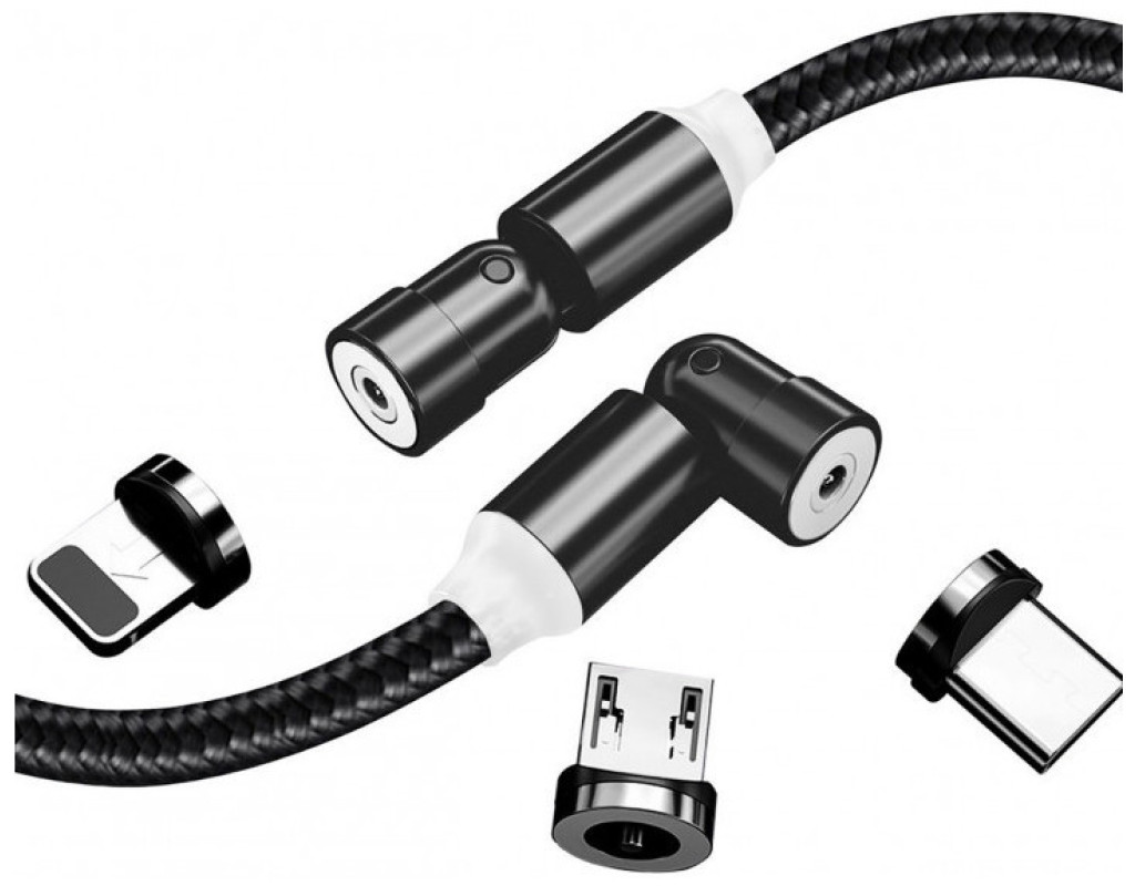 Тип - кабель, Тип коннектора 1 - USB 2.0, Тип коннектора 2 - micro USB, Lightning, USB Type-C, длина - 1 м, магнитные коннекторы, Цвет - черный