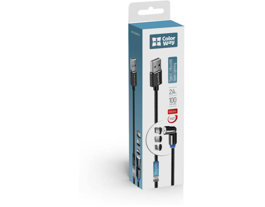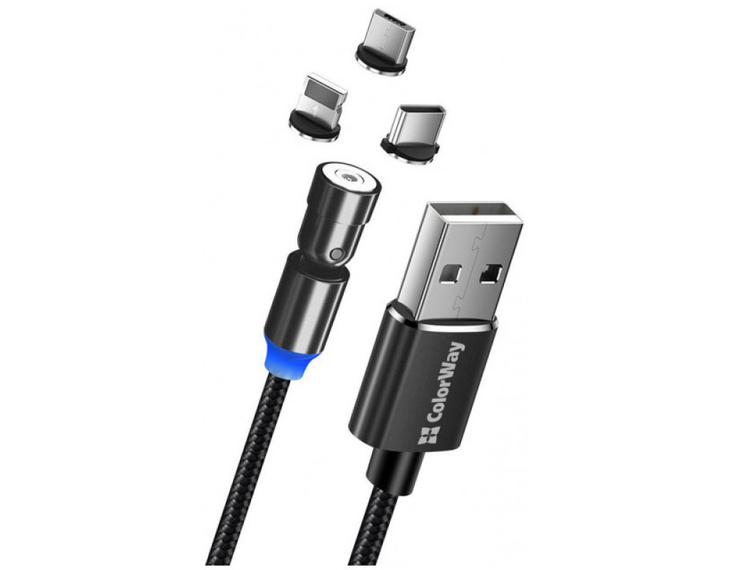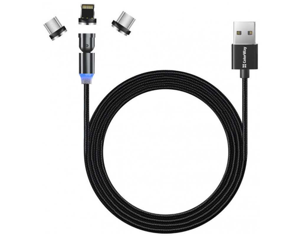 Дата кабель USB 2.0 AM to Lightning + Micro 5P + USB-C 1.0m Magnetic Ro ColorWay (CW-CBUU037-BK)