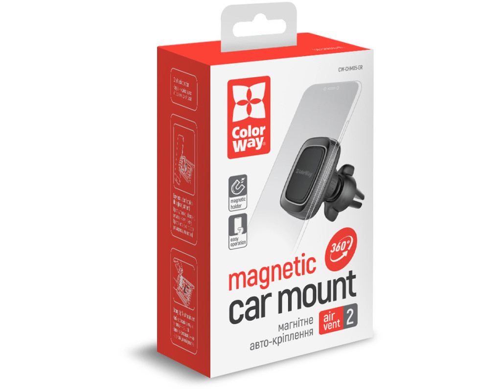 Компактный универсальный автодержатель СolorWay для телефона магнитный Air Vent-2 (360° rotation) Gray со встроенным магнитом. Идеальный вариант для тех, кто не любит длинные кронштейны и присоски, надежная и удобная прищепка закрепит держатель на панели воздуховода авто. Аксессуар отличается долговечностью, ведь изготовлен из качественных материалов: металла и SoftTouch-пластика. А благодаря компактному стильному дизайну он будет отлично смотреться в салоне любого авто и при этом не заслонять обзор водителю. Совместим с большинством устройств и максимально прост в эксплуатации. Шарнирное крепление с вращением на 360° позволит использовать смартфон в любом удобном положении, а благодаря мощным неодимовым магнитам ваше устройство будет надежно закреплено, что предотвратит выпадение даже при большой тряске. Особенности