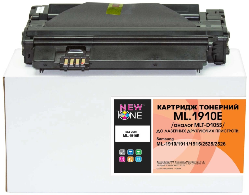 | Картридж NewTone для Samsung ML-1910/1911/1915/2525/2526 (ML.1910E) отвечает всем необходимым требованиям, предъявляемым к расходным материалам. Базовая надёжность и жёсткие испытания на соответствие стандартам качества гарантируют устойчиво высокое качество печати в сочетании с высочайшим уровнем надёжности и доступной ценой. |
