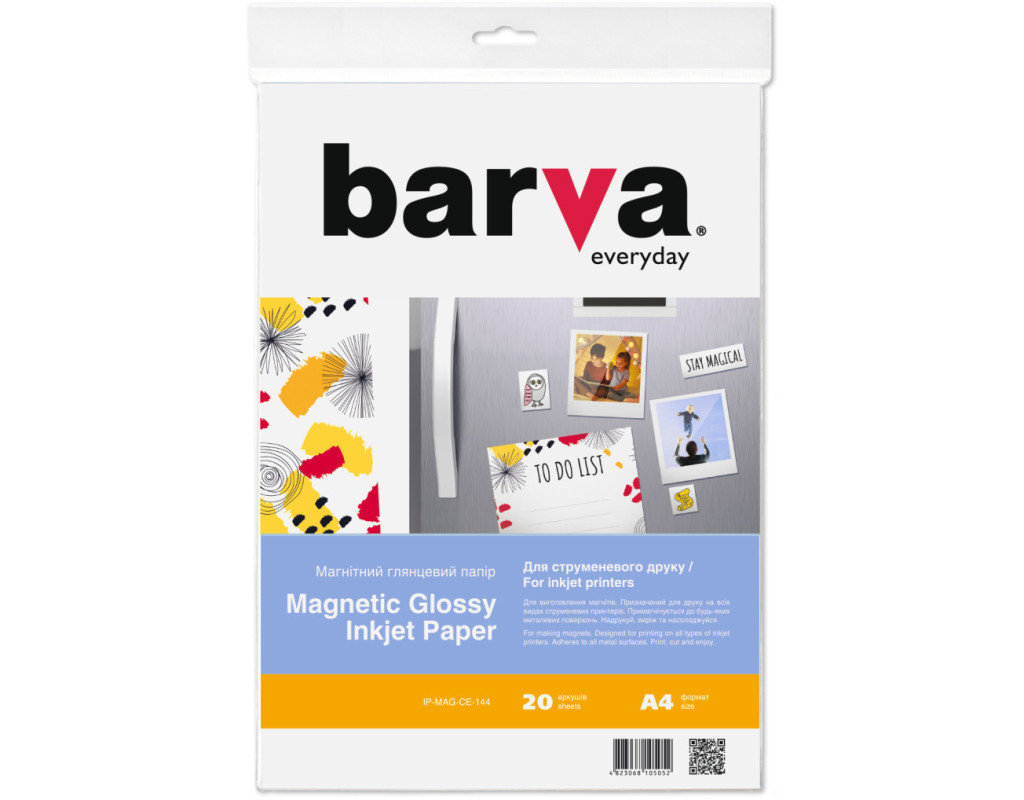 | Бумага BARVA A4 Magnetic (IP-BAR-MAG-GL-144) Глянцевая односторонняя бумага с магнитным слоем на обратной стороне. Предназначена для всех видов струйных принтеров, для печати водорастворимыми чернилами. Примагничивается к любым металлическим поверхностям. Материал легко режется ножницами, может использоваться для печати фотографий, календарей, расписаний, любых изображений и крепления их на металлические поверхности, такие как презентационные доски, холодильники, салон и кузов автомобиля, компьютеры, входные металлические двери складские стеллажи и т.п. |