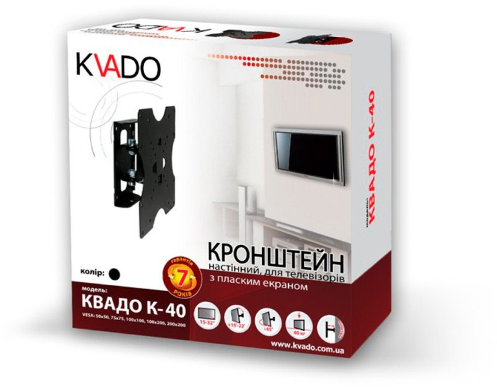 | КВАДО K-40 - это настенное крепление для ЖК-телевизоров. Алюминиевые детали КВАДО K-40 со стильной, гладкой поверхностью обеспечивают необыкновенную жесткость и устойчивость. С помощью настенного кронштейна КВАДО K-40 вы можете расположить ЖК, плазменную и ультратонкую LED панель практически в любой части комнаты. Он может решить проблему с размещением экрана в том случае, когда невозможно или нежелательно использовать подставку или шкаф. Системы совместимы с большинством моделей ЖК-телевизоров и плазм популярных производителей. Аксессуары подходят как для телевизоров стандарта VESA, который предусматривает четкое расположение отверстий для крепления на задней панели телевизора, так и универсального расположения отверстий для крепления. Крепления КВАДО K-40 отличаются стильным дизайном и очень надежной конструкцией, которая прослужит многие годы. |