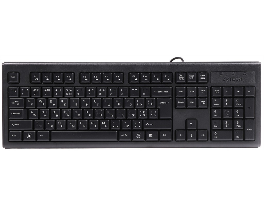 | A4 Tech KR-83 — проводная клавиатура с закругленными клавишами. количество клавиш: 104; раскладка: eng/rus/ukr; интерфейс: PS/2 совместимость ОС: Windows 98//2000/XP(x64)/VISTA. |
