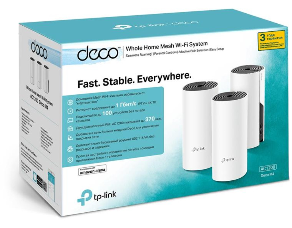 Благодаря современной Mesh-технологии модули Deco образуют единую домашнюю сеть с одним именем. Ваши устройства будут автоматически переключаться между разными модулями Deco на высокой скорости, куда бы вы ни пошли. Комплект Deco M4 с тремя устройствами обеспечивает покрытие до 370 кв.м. Если этого недостаточно – просто добавьте в сеть больше модулей Deco для увеличения покрытия. Deco M4 обеспечивает быстрое и стабильное соединение со скоростью до 1167 Мбит/с и работает с основными интернет-провадерами и модемами. Deco способен поддерживать работу даже самой загруженной сети, обеспечивая одновременное соединение для более чем 100 устройств. Родительский контроль ограничивает время в сети и блокирует соответствующий контент, создавая уникальные профили для каждого члена семьи. Настройка ещё никогда не была такой простой благодаря мобильному приложению Deco. |