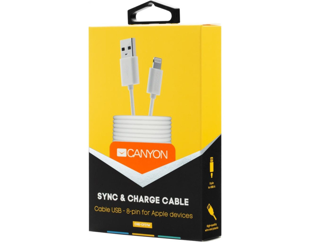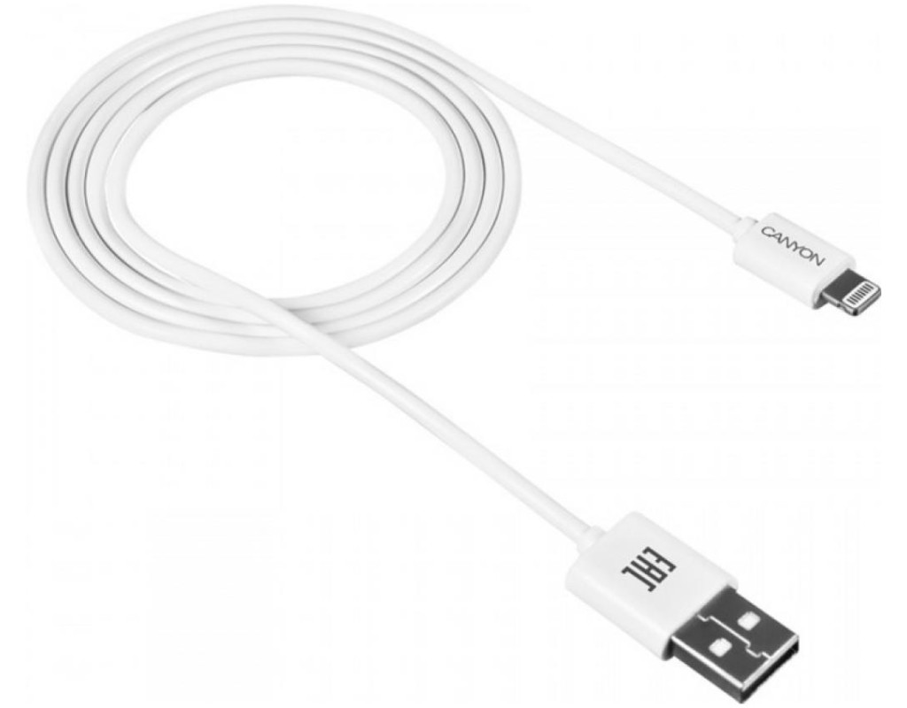 Дата кабель USB 2.0 AM to Lightning 1.0m White Canyon (CNE-CFI1W)