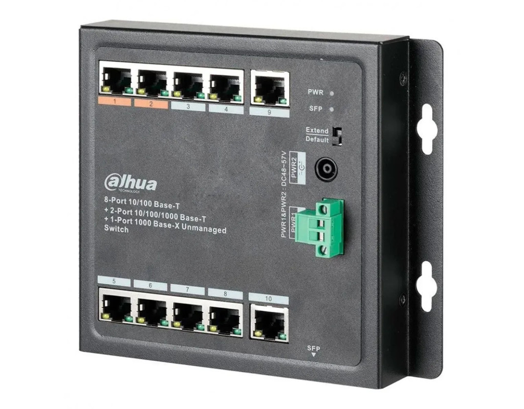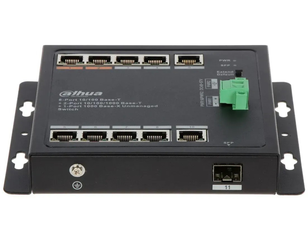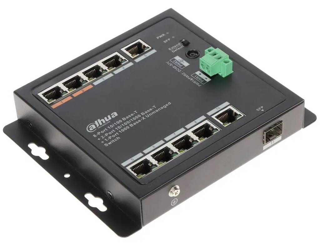 | DH-PFS3111-8ET-96-F - промышленный 8 портовый коммутатор Fast Ethernet, который поддерживает передачу данных и питания PoE на 250 метров. Оснащен восемью портами Fast Ethernet с поддержкой PoE (802.3af/at/bt), двумя портами Gigabit Ethernet и одним SFP (1.25Гб/с) портом. Устройство поддерживает два режима передачи данных (по умолчанию / CCTV), которые управляются с помощью DIP-переключателя. Высокий класс защиты, металлический корпус. |