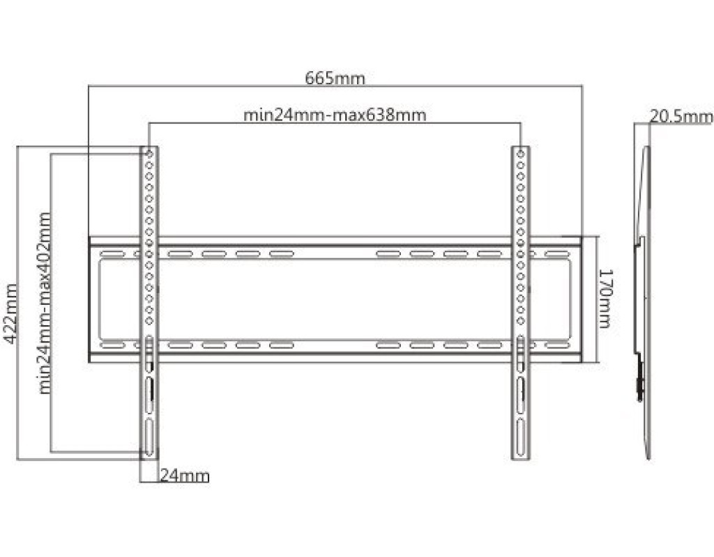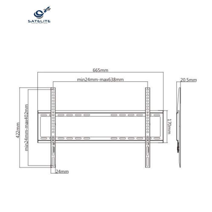 | Кронштейн 39-70FIX600 относится к фиксированной модели креплений, которая не предусматривает изменения положения экрана. Данное крепление предназначено для настенной установки телевизоров или мониторов с размером экрана от 39" до 70". Крепление Satelit 39-70FIX600 является универсальным, так как имеет регулируемый диапазон стандарта VESA min 200х200, max 600х400 и рассчитано на максимальный вес телевизора 35 кг. |