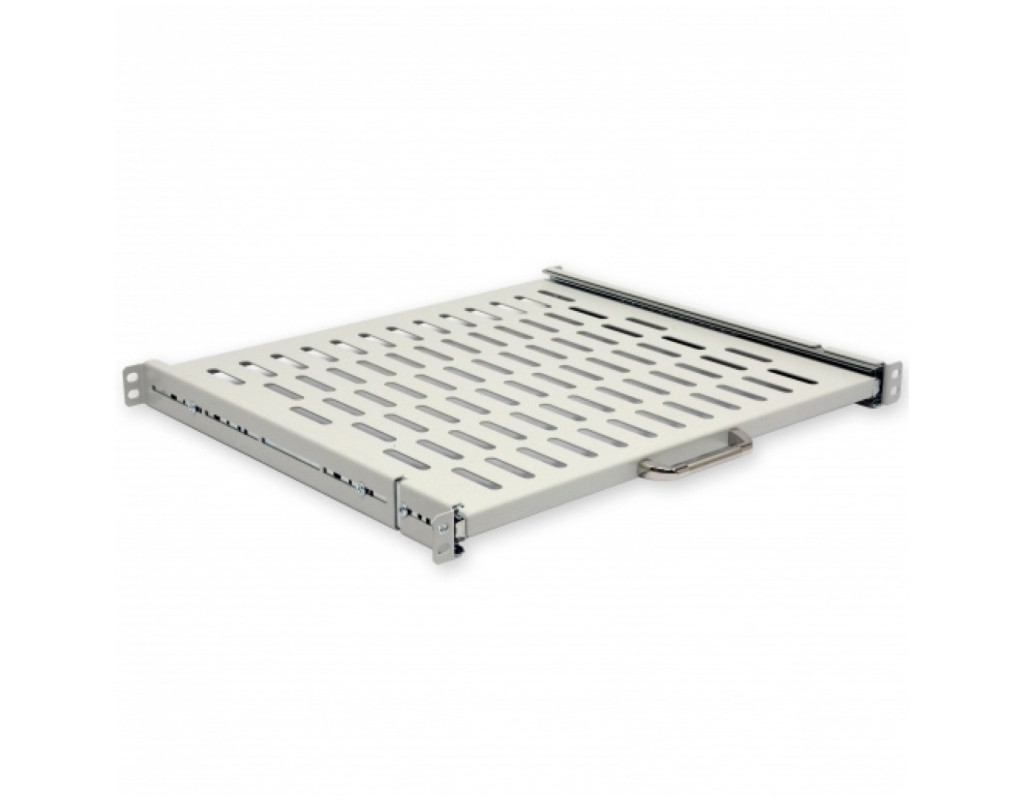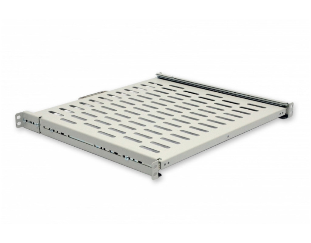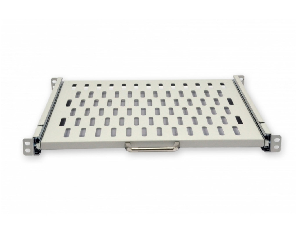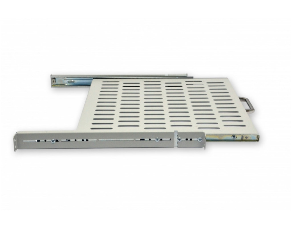 Выдвижная полка 19″ глубиной 400 мм устанавливается в серверный шкаф или стойку на 4 вертикальные направляющие и используется для размещения оборудования, к которому нужен доступ для работы или обслуживания, например: клавиатура и мышка, ПК, сервер, видеорегистратор. Благодаря встроенным в конструкцию направляющим (салазкам), вся горизонтальная поверхность полки выдвигается и доступна для использования даже при установленном на следующем юните оборудовании. Крепежная часть выдвижных полок регулируется по глубине от 400 мм до 600 мм, что позволяет установить ее в любые напольные шкафы и стойки с 2-мя парами 19″ направляющих с соответствующим расстоянием по глубине. Выдвижные полки окрашиваются порошковой краской и представлены в двух цветах: серый и черный. |