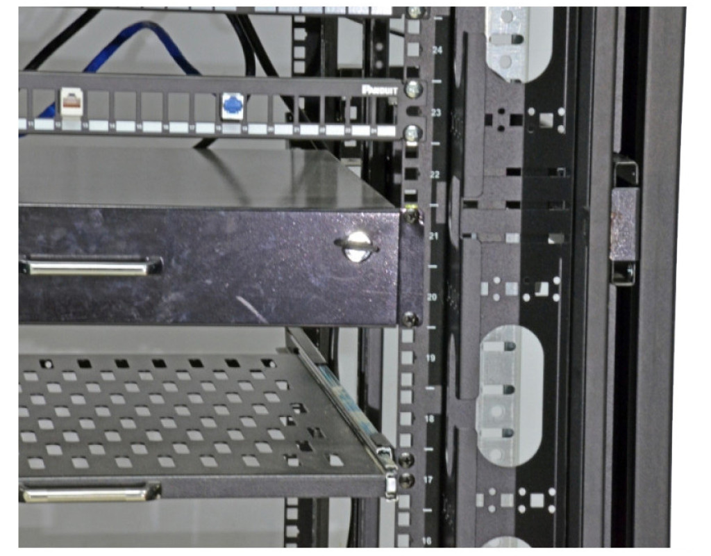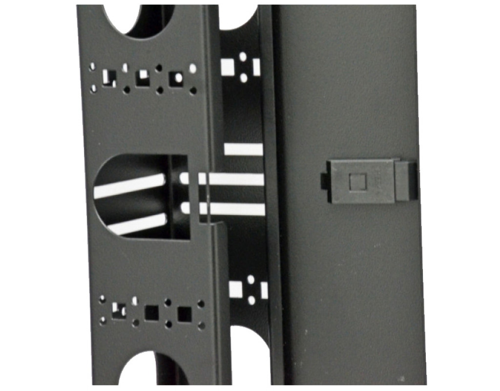 Организатор кабеля CMS 42U боковой с крышкой предназначен для установки в шкафы UA-MGSE4288 и UA-MGSE42810. Приспособление представляет собой цельнометаллическую панель, окрашенную краской чёрного цвета. |