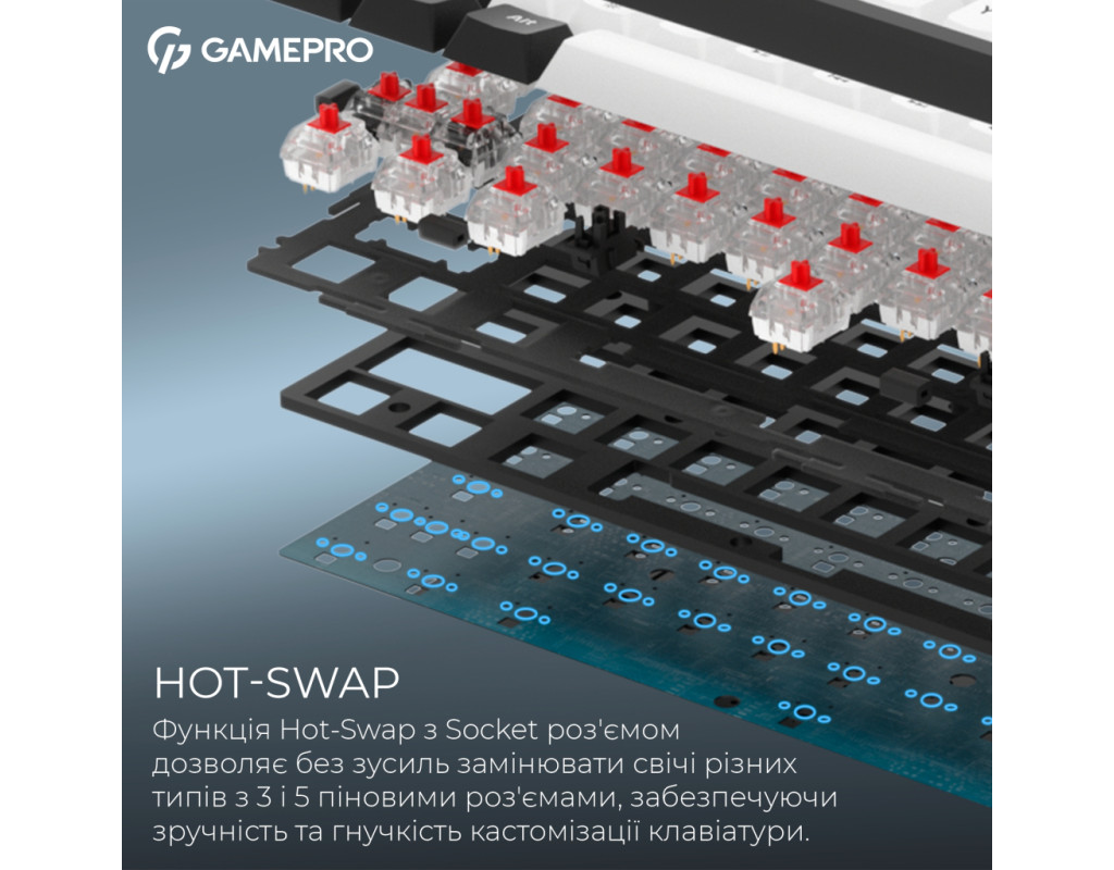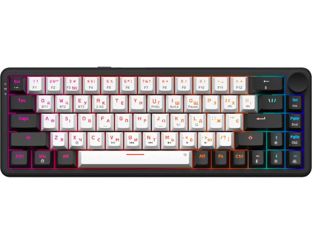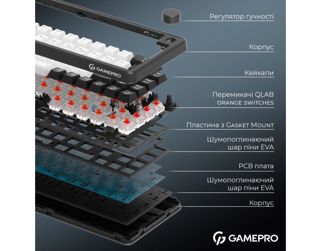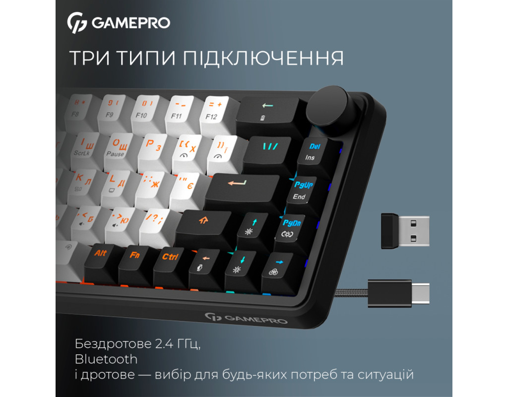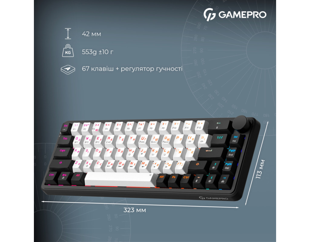 | Клавиатура GamePro Asgard Valhalla MK210B Pro 65 RGB Wireless/Bluetooth/USB Black (MK210B Pro) - это утончённый выбор для профессиональных геймеров и всех, кто ценит качество и стиль в каждой детали. Благодаря механической конструкции эта клавиатура обеспечивает высокую точность и скорость реагирования, что является незаменимым преимуществом в любой игре или при работе. Компактный форм-фактор 65% позволяет сэкономить ценное пространство на столе, не теряя при этом ни одной из важных функций. Это делает Asgard Valhalla оптимальным решением для игроков, которым нужен комфорт и удобство при каждом нажатии. Дизайн клавиатуры, дополненный RGB-подсветкой, которую можно настраивать, добавляет индивидуальности и подчеркивает ваш стиль. Для максимального комфорта использования Asgard Valhalla поддерживает три варианта подключения: проводной USB, беспроводной 2.4 ГГц адаптер и Bluetooth. Это гарантирует гибкость в подключении к различным устройствам, включая телевизоры, и обеспечивает совместимость с ОС Windows и Linux. Встроенный литиевый аккумулятор на 3000 мА·ч обеспечивает длительную автономность, чтобы клавиатура могла работать долго без подзарядки, всегда оставаясь готовой к действию. Качественные PBT-кейкапы, тип конструкции Gasket Mount и два слоя звукоизоляционной пены EVA минимизируют шум и обеспечивают приятный тактильный отклик. Точные и лёгкие переключатели QLAB Orange с линейным ходом срабатывают на каждое нажатие с плавностью и лёгкостью, которую высоко ценят игроки. С ресурсом до 50 миллионов нажатий, эти переключатели обещают долговечность и стабильную производительность. Дополнительно клавиатура имеет Anti-Ghosting и полную поддержку N-KRO, что позволяет регистрировать все нажатия одновременно, без пропусков и задержек. Комплект включает набор сменных 100% PTFE глайдов, которые помогут сохранить клавиатуру в идеальном состоянии, а также два дополнительных переключателя для замены при необходимости. Всё это делает GamePro Asgard Valhalla MK210B Pro идеальным спутником для тех, кто стремится к комфортному и продуктивному использованию с элементом стиля. |