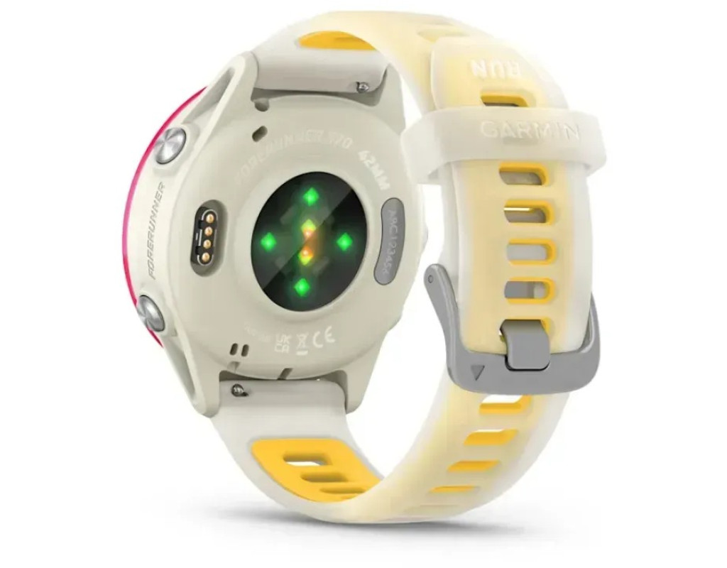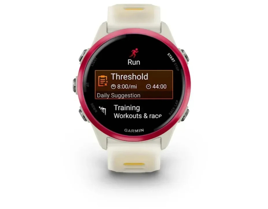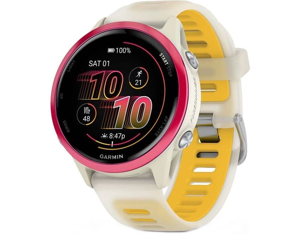 Предназначены для спортсменов, стремящихся к высоким результатам С новыми беговыми смарт-часами Garmin Forerunner 570, которые предлагают расширенный функционал для тренировок и восстановления, а также персонализированные планы тренировок Garmin Coach для бега и триатлона, ваши занятия спортом станут более продуктивными. Выглядят красиво, работают отлично! Благодаря яркому AMOLED-дисплею, легкому алюминиевому безелю и разнообразной цветовой палитре в дизайне эти часы привлекают к себе внимание, смотрятся креативно, но при этом удобны как на тренировках, так и в повседневном ношении. Компания Garmin предоставляет выбор потребителю, предлагая два размера смарт-часов: 42 мм и 47 мм. Автономность Forerunner 570 – до 10/11 дней при обычном использовании в режиме умных часов. «Немного занят. Что случилось?» Знакома вам такая ситуация, когда отвлекают от тренировки телефонными звонками? А у вас нет возможности прервать активность или просто неудобно взять в потные руки телефон? Если да, то умные часы Forerunner 570 вас порадуют тем, что в их корпус интегрированы динамик и микрофон, с помощью которых можно принимать звонки во время пробежки прямо на запястье. Яркий 1,2-дюймовый AMOLED-дисплей До 18 часов работы батареи в режиме GPS Расширенные функции для тренировок и восстановления Технология SatIQ и многодиапазонный GPS Легкий алюминиевый безель Музыка на вашем запястье Что вам понравится Адаптивные планы тренировок Garmin Coach Подготовьтесь к следующему забегу, тренируйтесь для достижения важного результата или просто улучшите свою физическую форму с помощью планов тренировок Garmin Coach для бега, триатлона, велоспорта или силовых тренировок. Выберите нужный план, и он будет ежедневно адаптироваться для персонализированных тренировок на основе показателей вашей производительности, восстановления и здоровья. Готовность к тренировкам С момента пробуждения вы получаете оценку готовности, основанную на данных о качестве сна, восстановлении, тренировочной нагрузке и других параметрах, чтобы вы могли определить, для чего подходит сегодняшний день – для интенсивной нагрузки или для расслабления. Статус тренировки Используя такие показатели, как статус вариабельности сердечного ритма, история последних тренировок и максимальный уровень потребления кислорода (VO2), вы легко сможете оценить эффективность тренировок и узнать, тренируетесь ли вы продуктивно, находитесь ли на пике формы или испытываете перенапряжение Вечерний отчет Чтобы лучше подготовиться к следующему дню, перед сном вы получите вечерний отчет с напоминаниями о потребности во сне, завтрашней тренировке, погоде и намеченных событиях. Ежедневные рекомендуемые тренировки Получайте рекомендации по тренировкам, разработанные специально для вас и на основе ваших данных. Эти рекомендации отличаются по интенсивности и адаптируются после каждой тренировки с учетом производительности и восстановления. Встроенные динамик и микрофон Совершайте и принимайте телефонные звонки с часов, когда они сопряжены со смартфоном. Кроме того, управляйте функциями часов с помощью голосовых команд или используйте голосового помощника смартфона, чтобы отвечать на текстовые сообщения и многое другое. Соединение Музыка Загружайте песни и плейлисты из своих аккаунтов Spotify, Deezer или Amazon Music для прослушивания без телефона. Функции бе