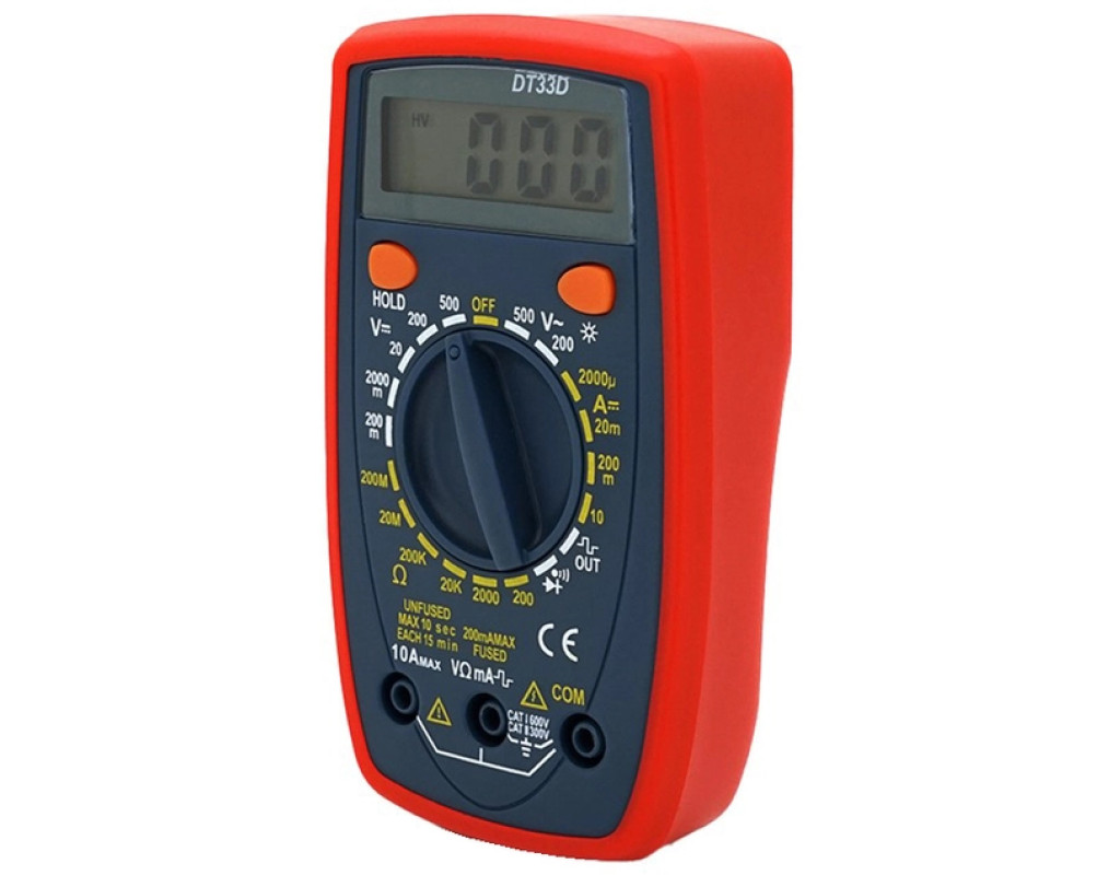 Мультиметр DT-33D - надежный и универсальный инструмент для измерения напряжения, тока и сопротивления. С его помощью вы можете легко и точно проверить электрические параметры различных устройств и цепей.