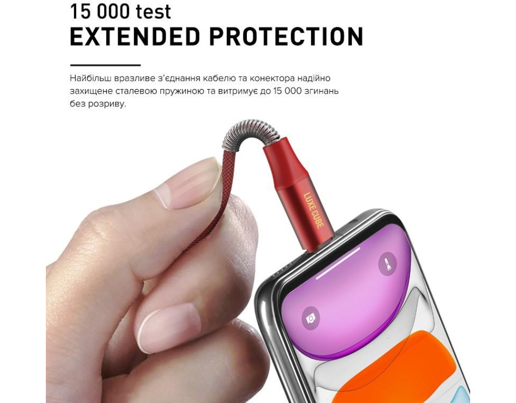 | Каждая часть кабеля серии ARMORED от LUXE CUBE усилена, чтобы обеспечить надежную и долговечную службу. Наиболее уязвимое соединение кабеля и коннектора надежно защищено стальной пружиной и выдерживает до 15 000 сгибаний без разрыва.