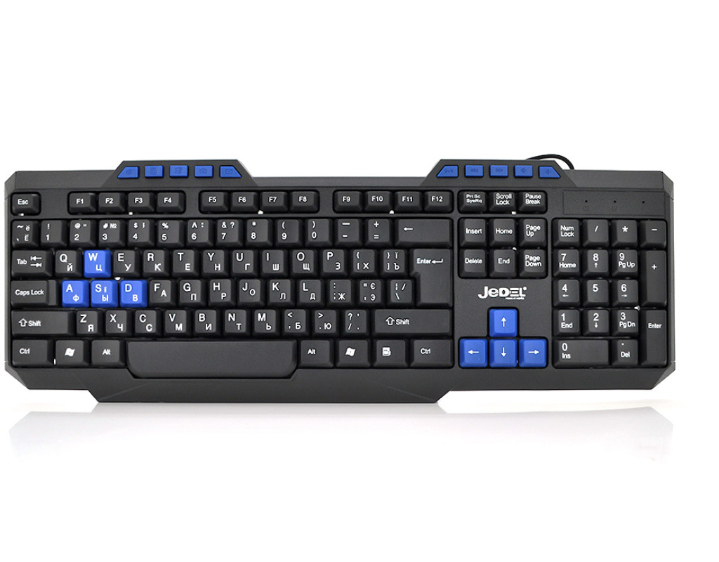 | Клавіатура USB Jedel K518 – найкраще рішення для комфортної роботи та ігрових баталій (будь упевнений, що клавіші 'W, A, D, S' зітруться не скоро)! особливості: • Тихий та чіткий хід клавіш • Високоякісна мембрана • Ергономічний дизайн • Працює з будь-якими системами, без необхідності встановлення драйверів • З цифровим блоком Характеристики: • підключення - провідне (usb) • кількість клавіш – 112 шт. • мови - російська / англійська / українська • розміри (ДхШхВ) – 435х130х21 мм • колір чорний • упаковка – коробка |