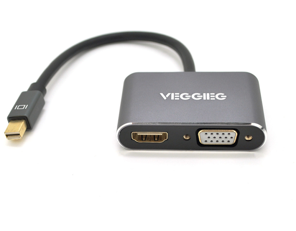 | Конвертер VEGGIEG MD2-M HDMI (тато) на VGA (мама) + HDMI (мама) - для підключення макбука і інших пристроїв до VGA або HDMI монітора, телевізора, проектора. Характеристики: • Довжина кабелю: 25 см • Тип роз`єму: MiniDisplay Port (тато) на HDMI (мама) + VGA (мама) • Колір: сріблястий • Упаковка: пакет • Кількість в упаковці: 1 шт - конвертер |