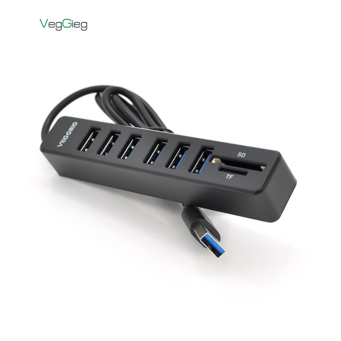 | Технічні характеристики Хаб-кардрідер універсальний VEGGIEG V-C306 Кількість роз`ємів (портів) USB2.0: 6 шт Тип читання карт: SD / TF Тип матеріалу: пластик Колір: синьо-чорний Тип упаковки: Блістер |
