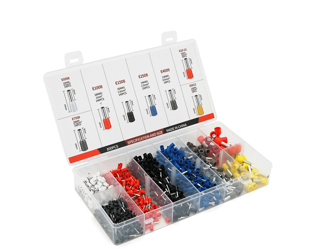 Набір клем / наконечників 800шт(E0508w-140 E2508b-140,E1008r-140,E1508bl-140,E4009gr-50,E7508gr-140,E6012y-25,E1012r-25) у боксі