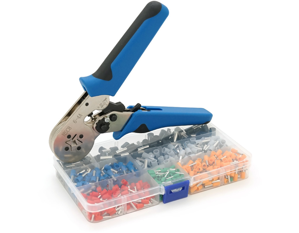 Кримпер HCS8 6-4A для обтиску кабельного наконечника, Black-blue, набір кабельних наконечників (VE0508, VE7508, VE1008, VE1508, VE2508, VE4009, VE6102)